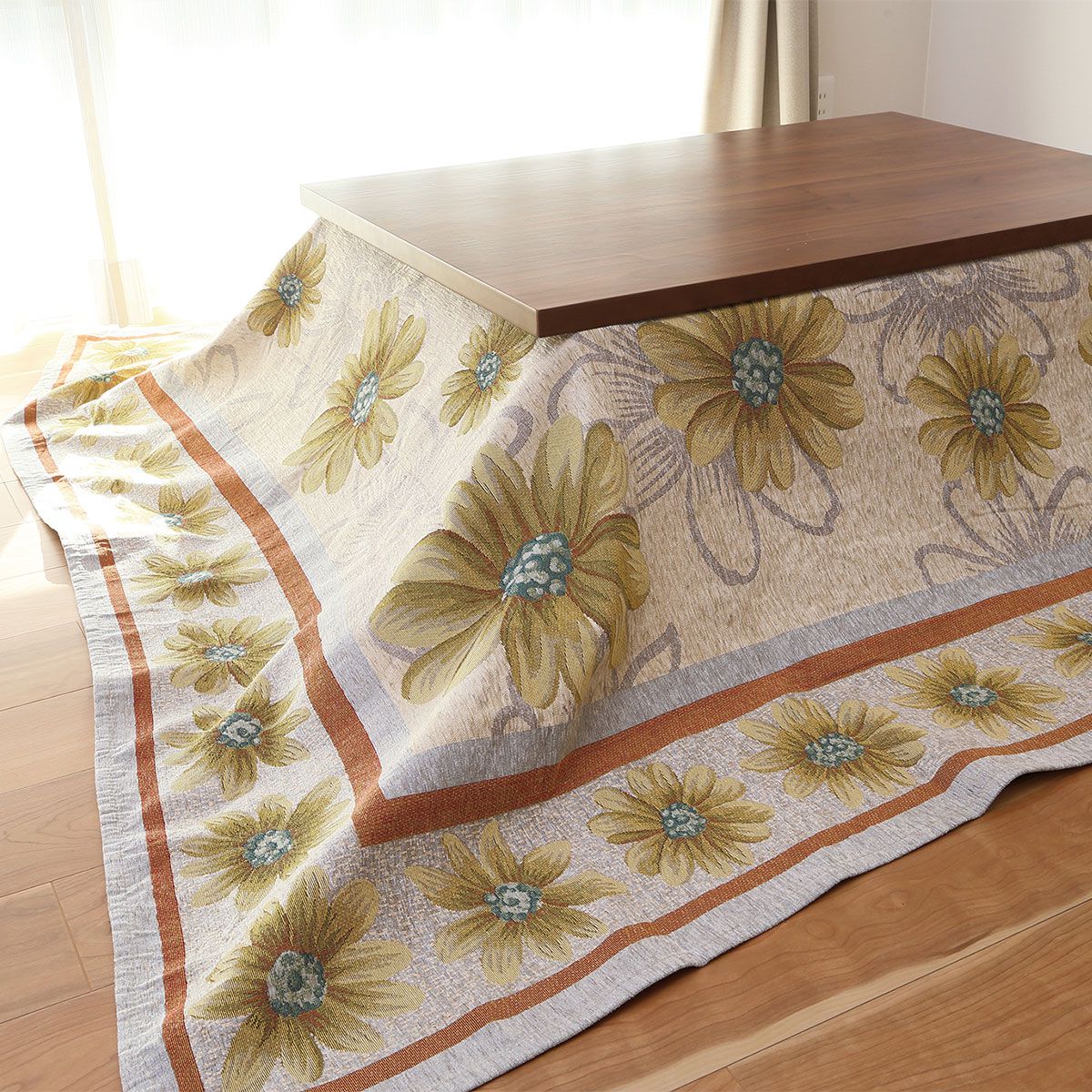 ジャカード織りで描かれた大輪のマーガレット柄が美しい、イタリア製マルチカバーです。サッとかぶせるだけでお手持ちのソファやベッドを鮮やかに彩ります。こたつカバーとしてもおすすめ。