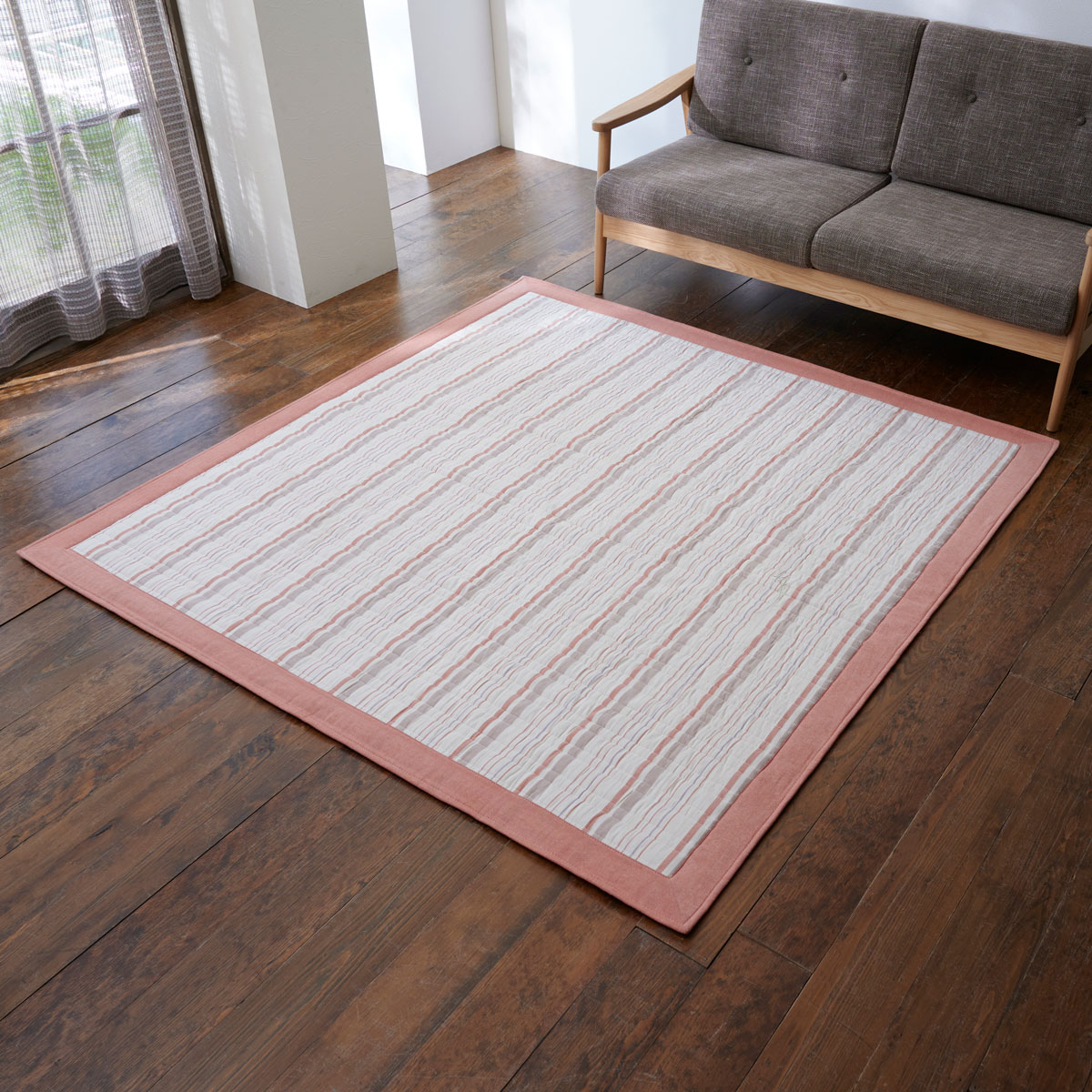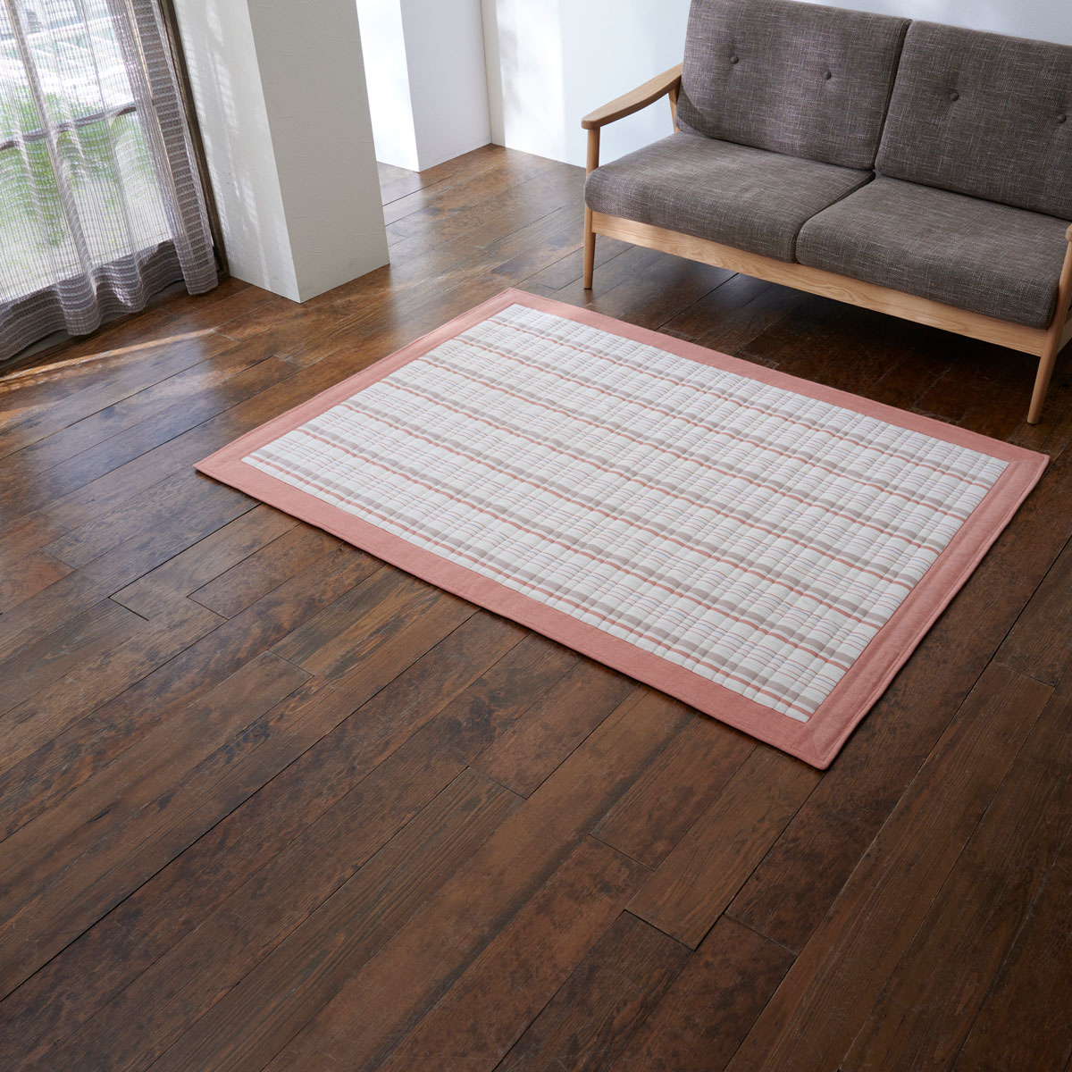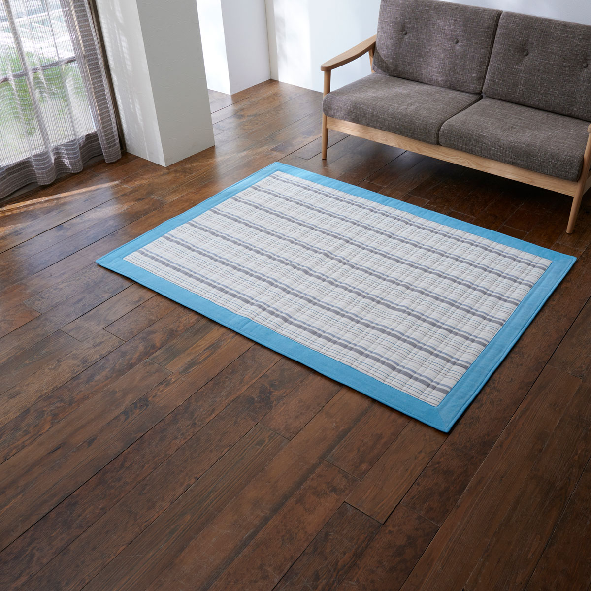 しじら織キルトラグ(綿100%さらっとした肌触り) 汚れても洗濯機で丸洗いOK ズレを防ぐ裏すべり止め付き