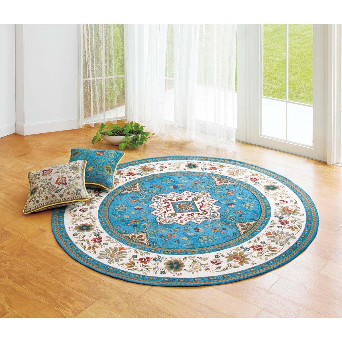 (上から) ターコイズブルー・ベージュ(横45×縦45cm)美しいフォルムで、おしゃれな印象に。