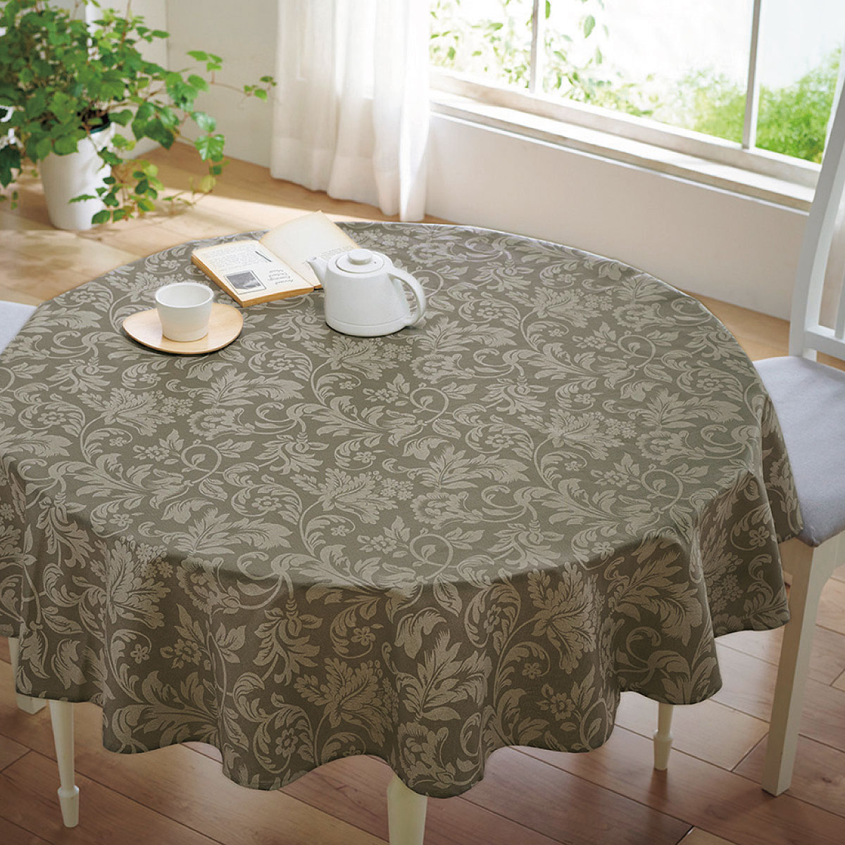 ブラウン 円形(直径150cm)食事の時間を素敵に演出する、スペイン製のテーブルクロスです。
