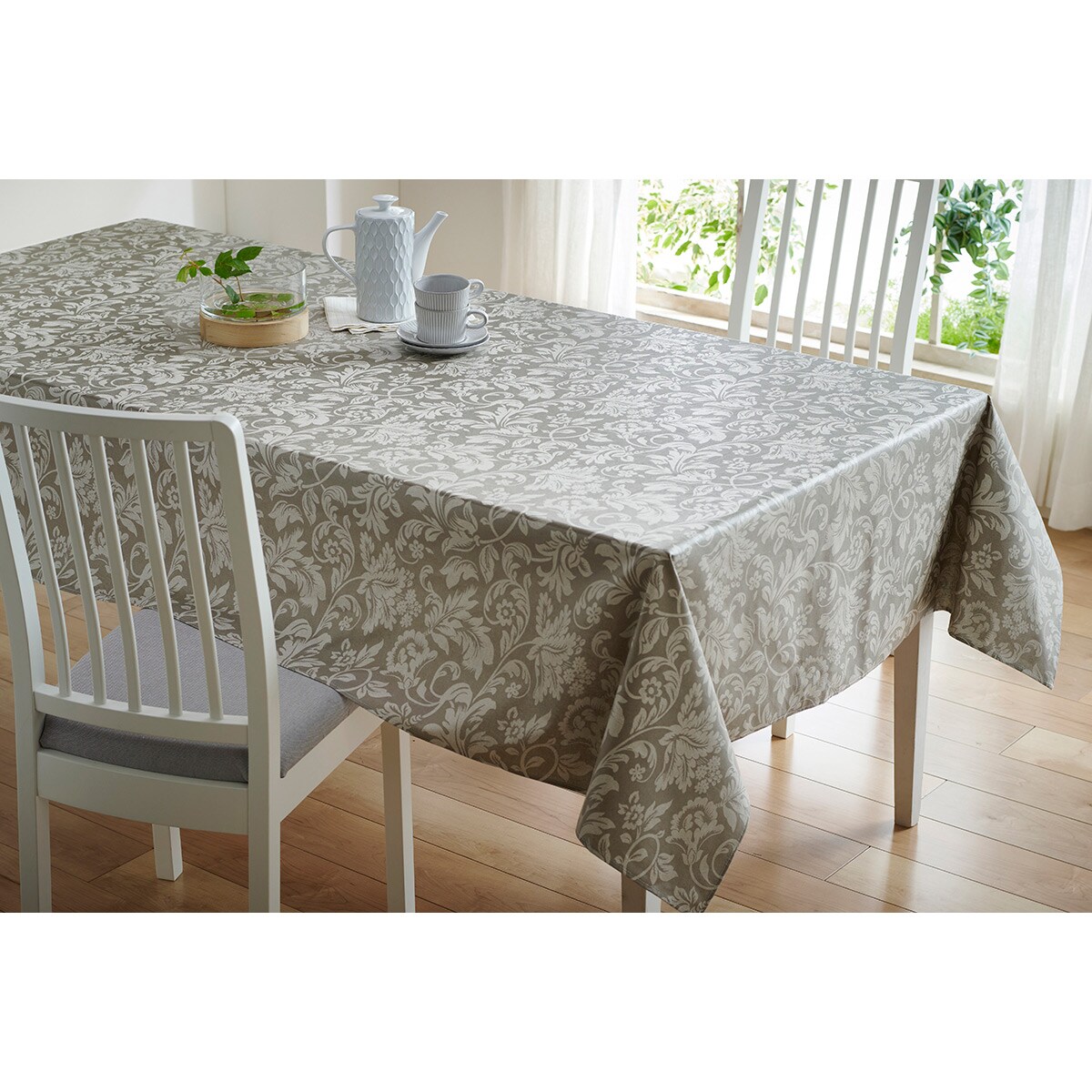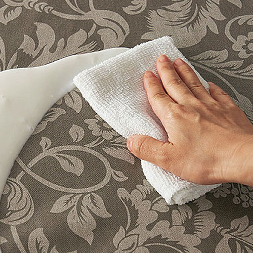 家で過ごす食事の時間を素敵に演出するテーブルクロスです。いつものテーブルに掛けるだけで食事時間が楽しくなりそう。撥水加工を施しているので、水やワインがこぼれても拭くだけで汚れが取れます。汚れが酷いときでも洗濯機で丸洗いできる手軽さも嬉しいポイントです。