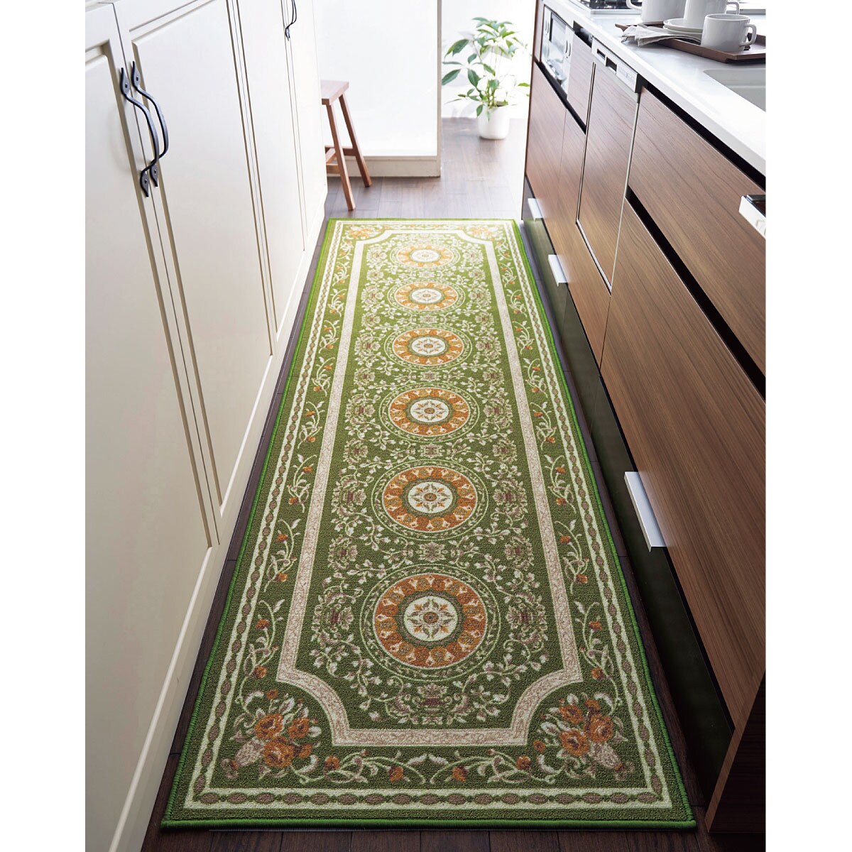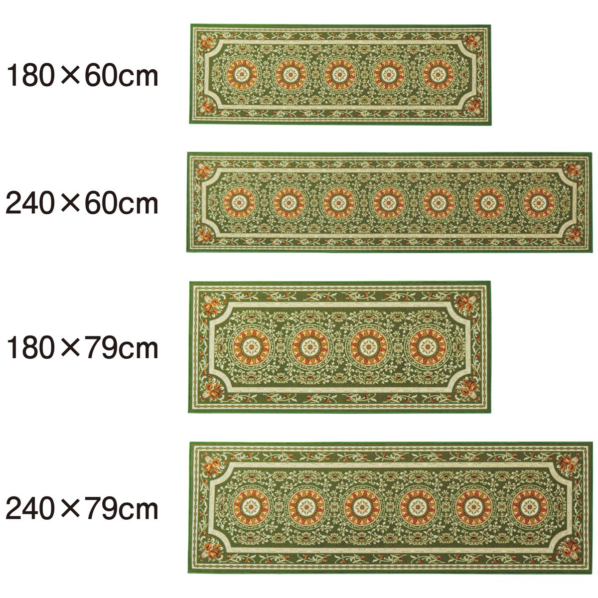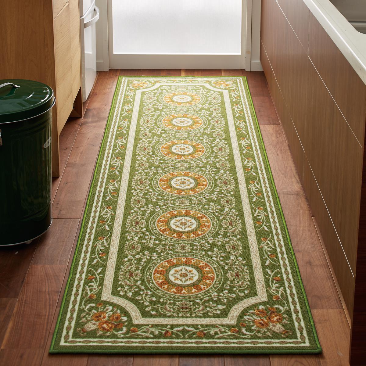 グリーン(横240×縦79cm)広幅サイズで、汚れをしっかりカバーするキッチンマットです。