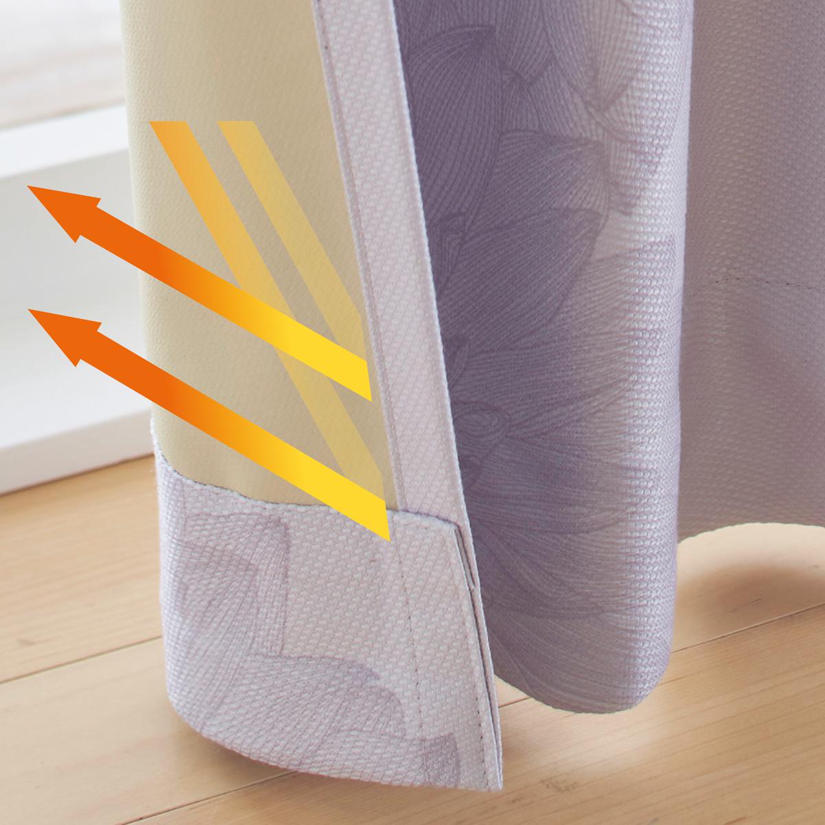カーテンの裏面に施された4層のアクリル樹脂コーティングで、屋外の騒音はもちろん、室内からの音漏れも軽減するカーテンです。1級遮光裏地付きで、気になる光もしっかりカット。朝日や西日がまぶしいお部屋、ぐっすり眠りたい方の寝室にもおすすめ。遮熱・保温効果にも優れているので、省エネ対策にも。シックなグレイッシュカラーに浮かぶダリア柄が、洗練された大人の空間を演出します。形状記憶加工付きで、美しいドレープが長続き。充実のサイズ展開で、小窓から幅広窓まで対応します。
