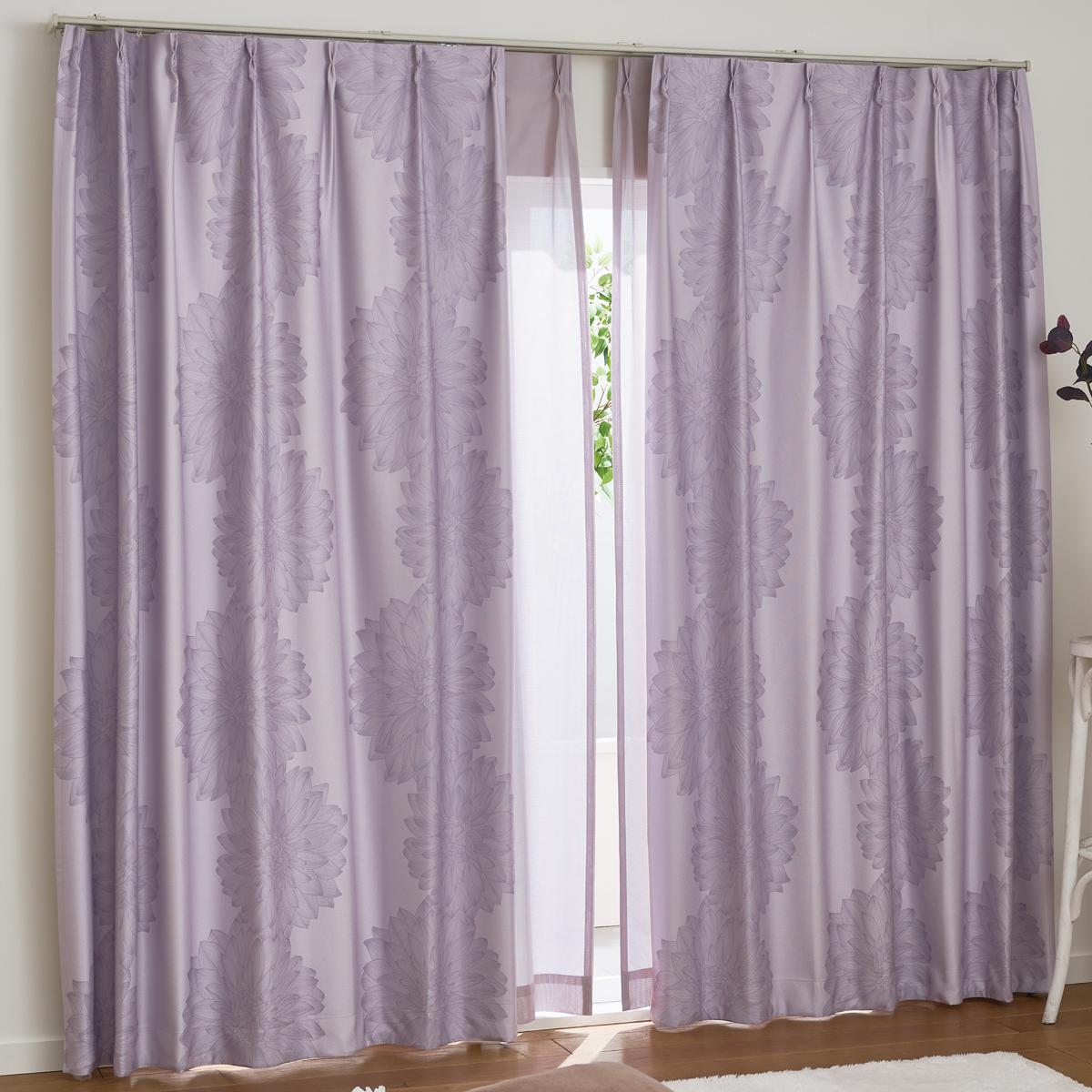 パープル大輪のダリア柄が美しい、1級遮光遮音カーテンです。