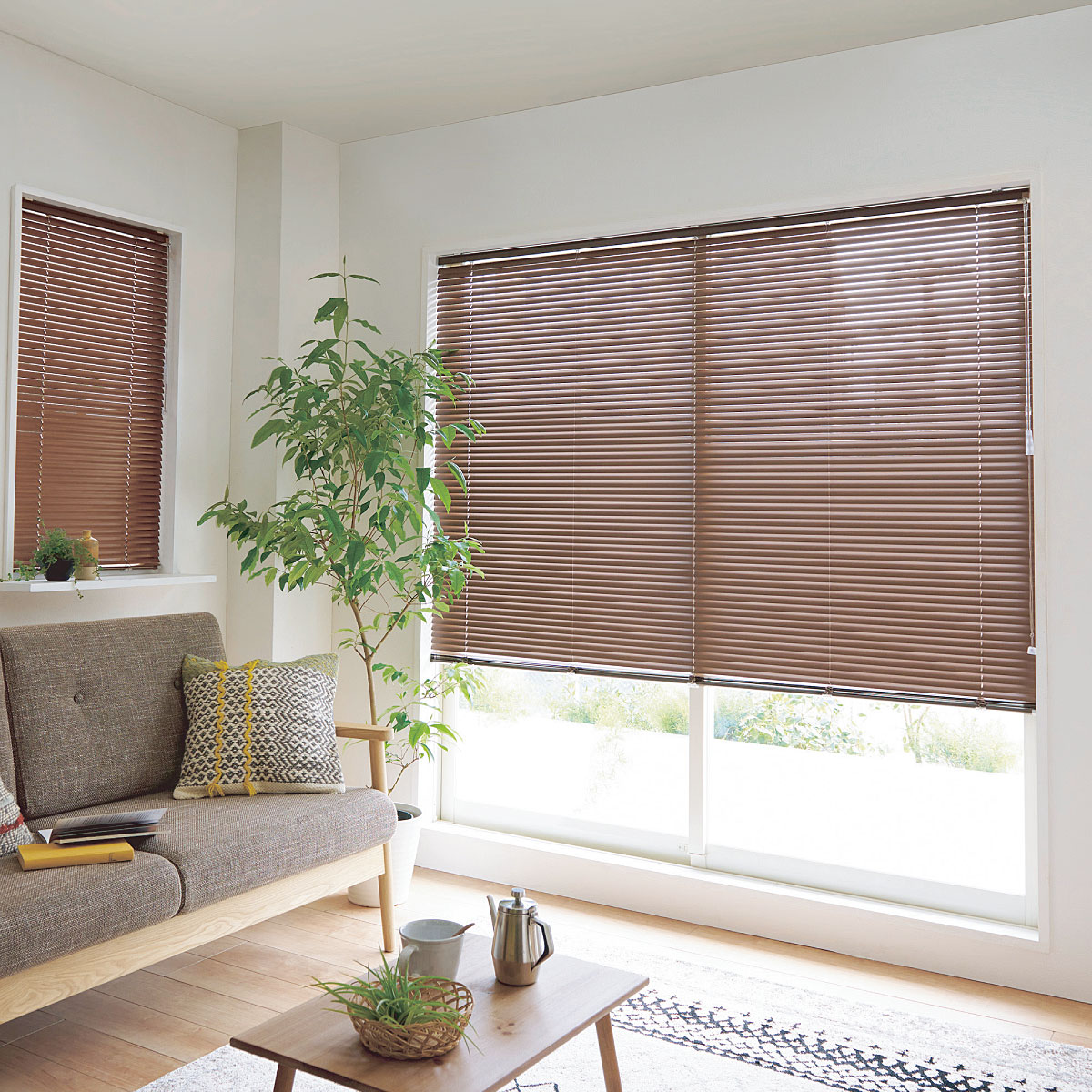インテリアになじむ風合いの、木目調アルミブラインドです。