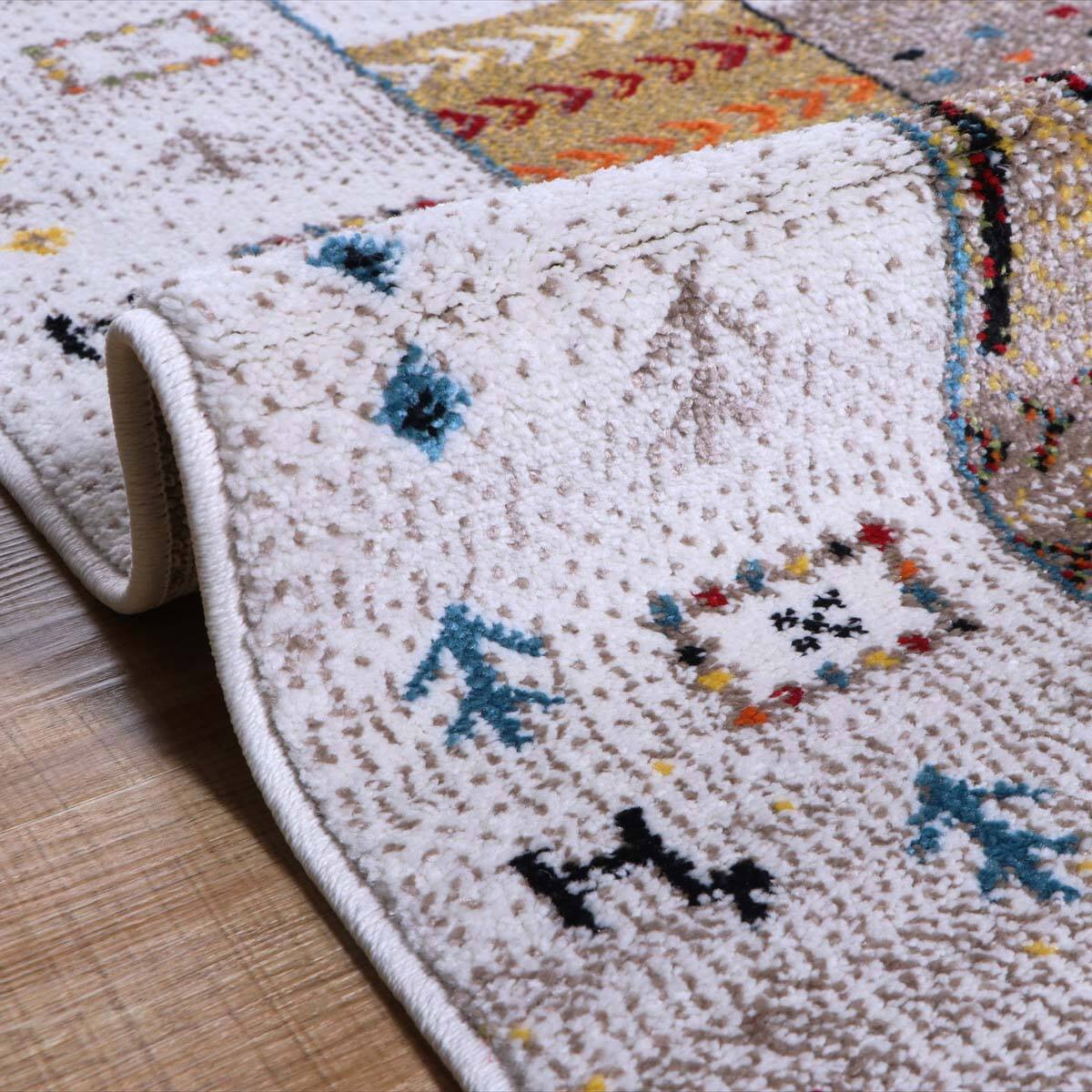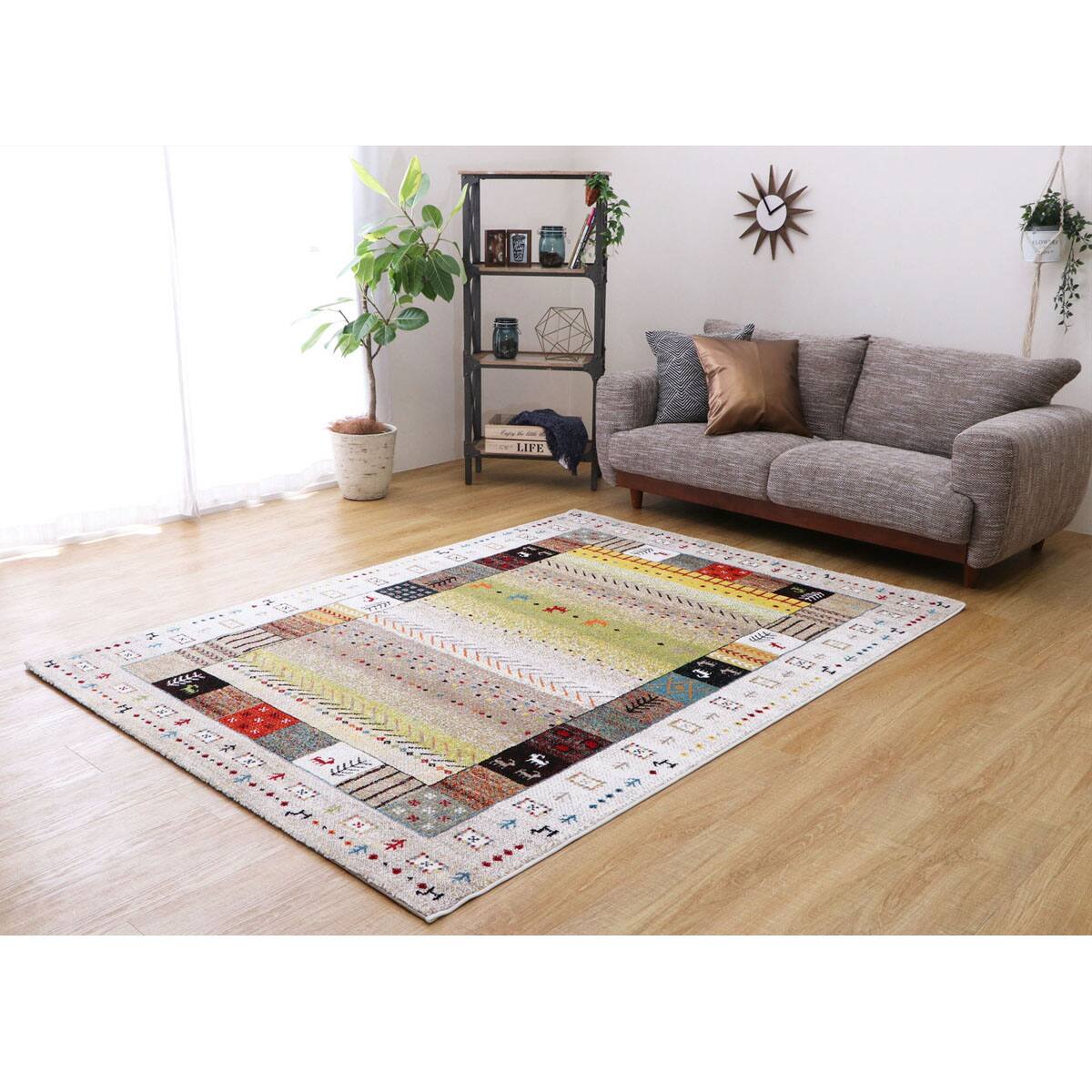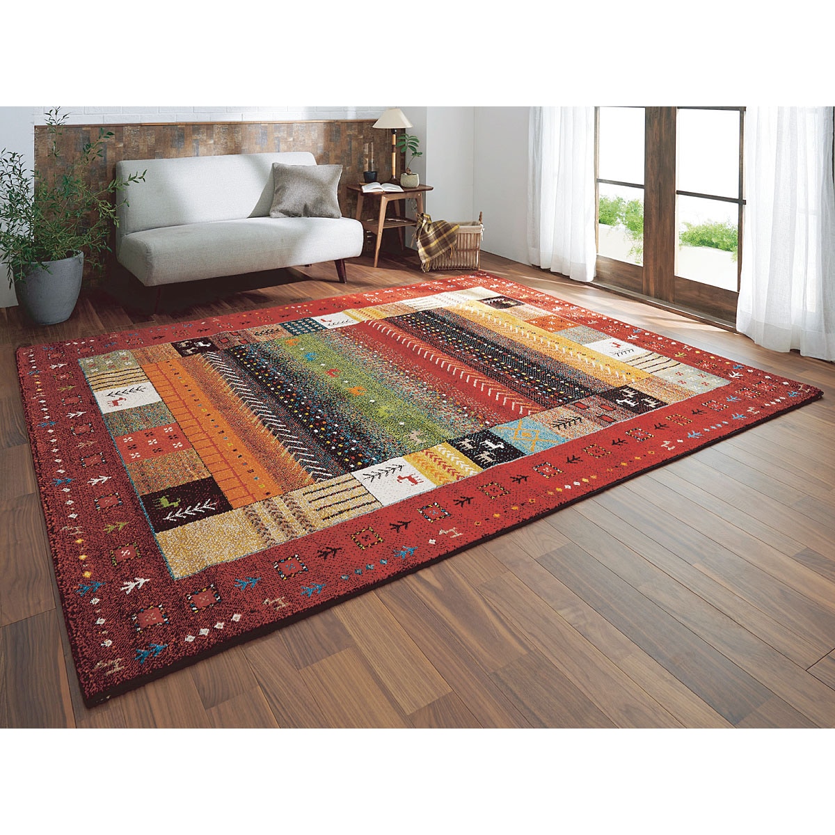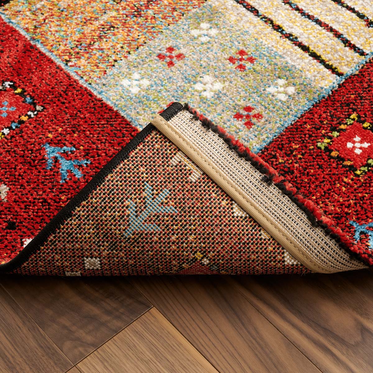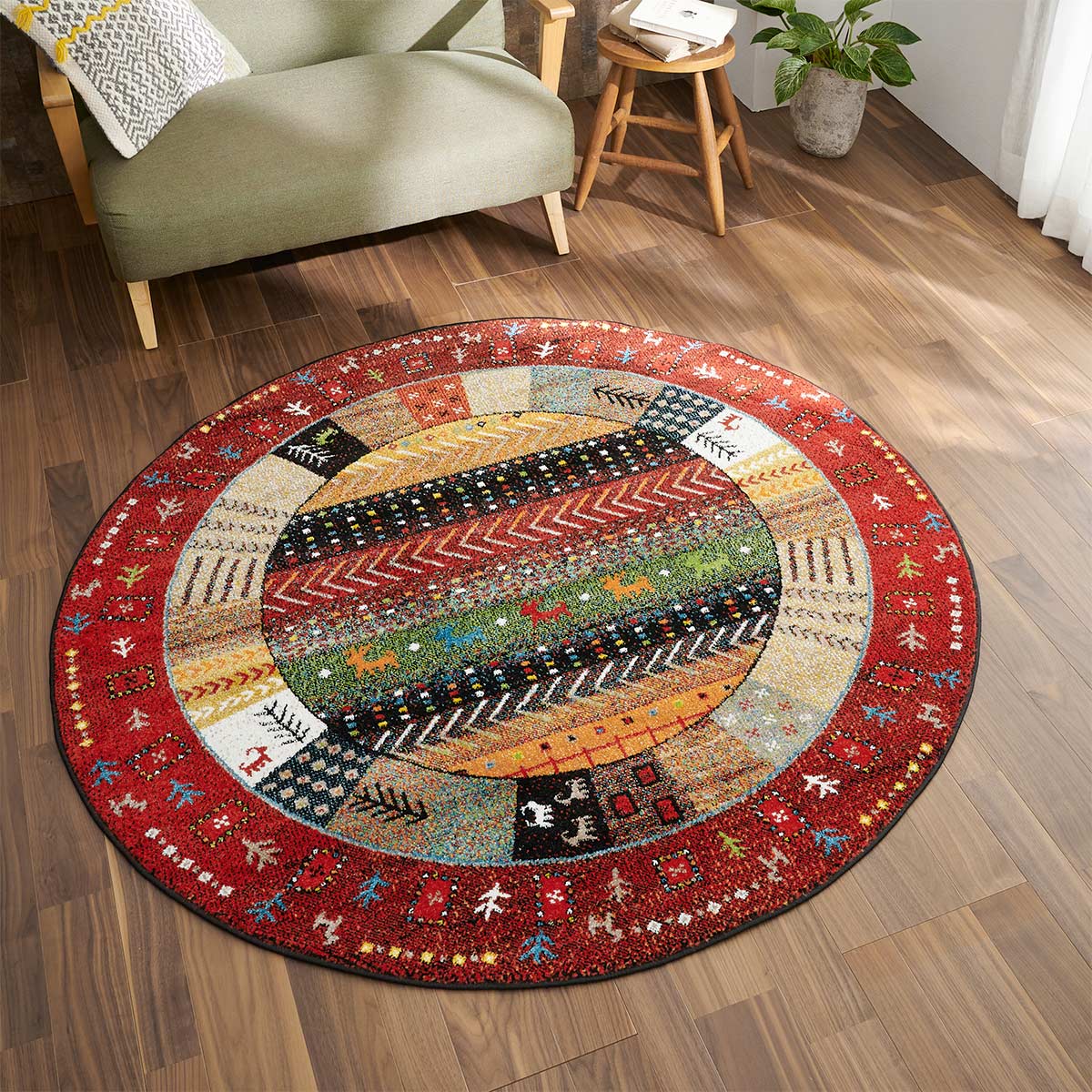 ふかふかとしたやわらかな踏み心地で摩耗に強い丈夫な素材を使用した、トルコ製のウィルトンラグです。18世紀イギリスで生まれた伝統あるウィルトン織りは、美しいだけでなく弾力性や耐久性にも優れていることから、数多くの高級ホテルでも使用されてきました。遊牧民に伝わる伝統の「ギャッベ」柄は、子供の成長や家族の健康、自然への感謝など様々な思いが込められています。色鮮やかに表現された模様がお部屋を上質な空間に。折りじわができにくい丸巻きでお届けします。