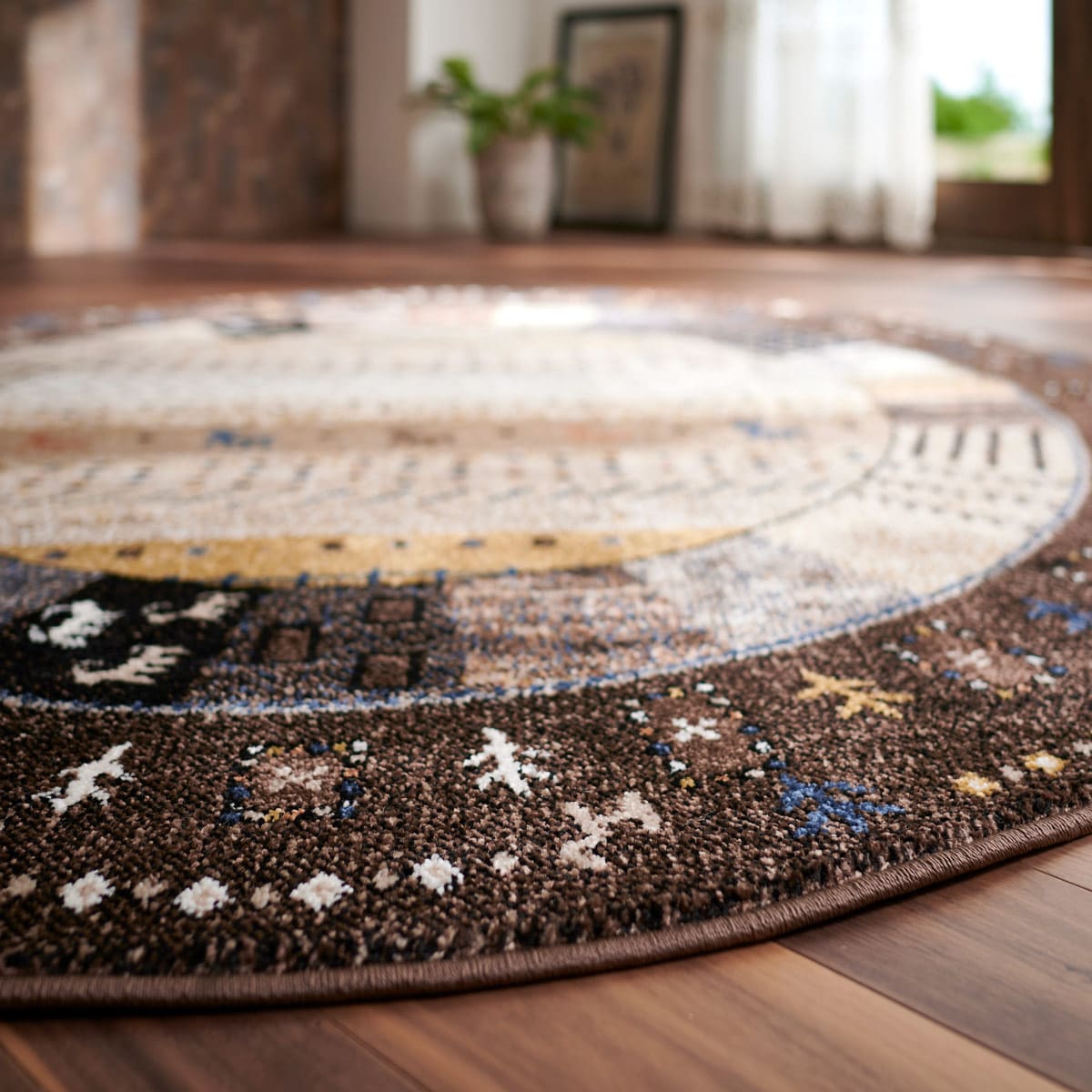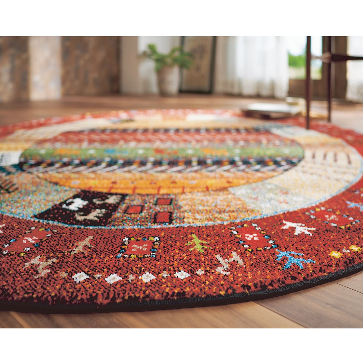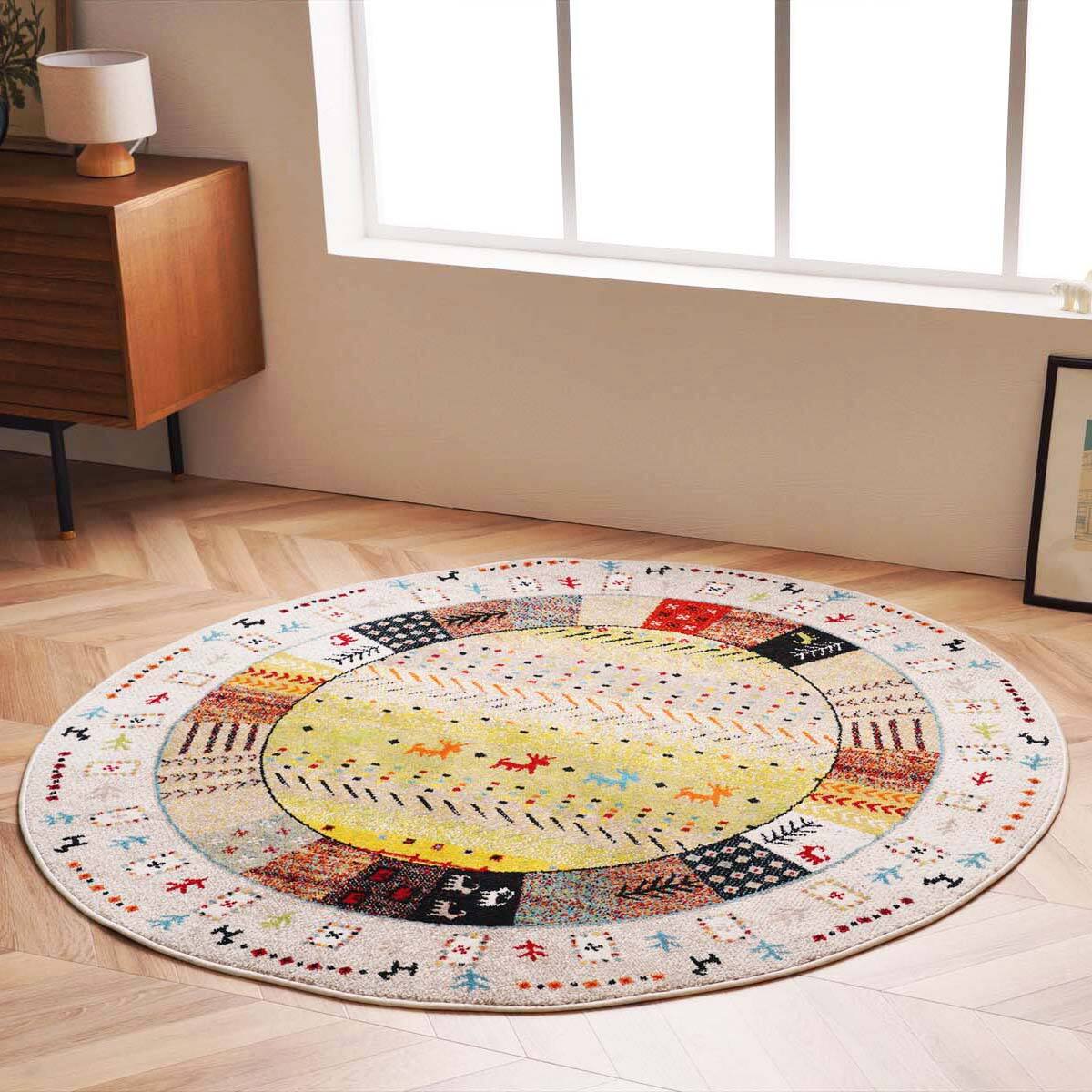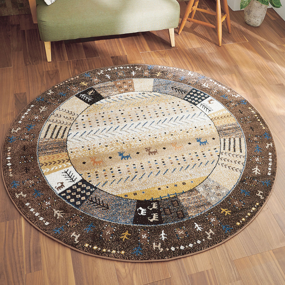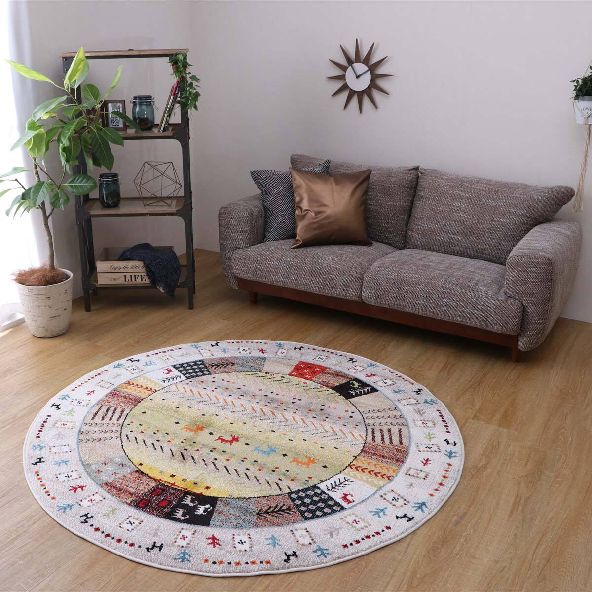 アイボリー 円形(直径160cm)色鮮やかに表現された模様がお部屋を上品な空間に。