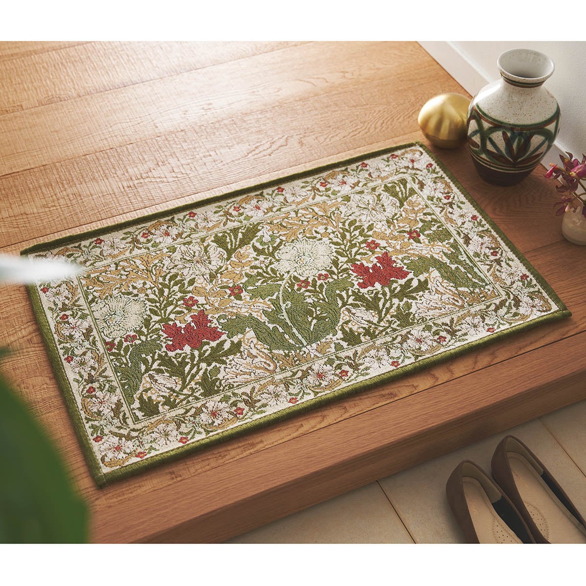 豊かな色彩と自然のモチーフに魅了されて。暮らしに彩りを与える「ウィリアム・モリス」のインテリアマットです。いつものお部屋にサッと敷くだけで優美な空間に。