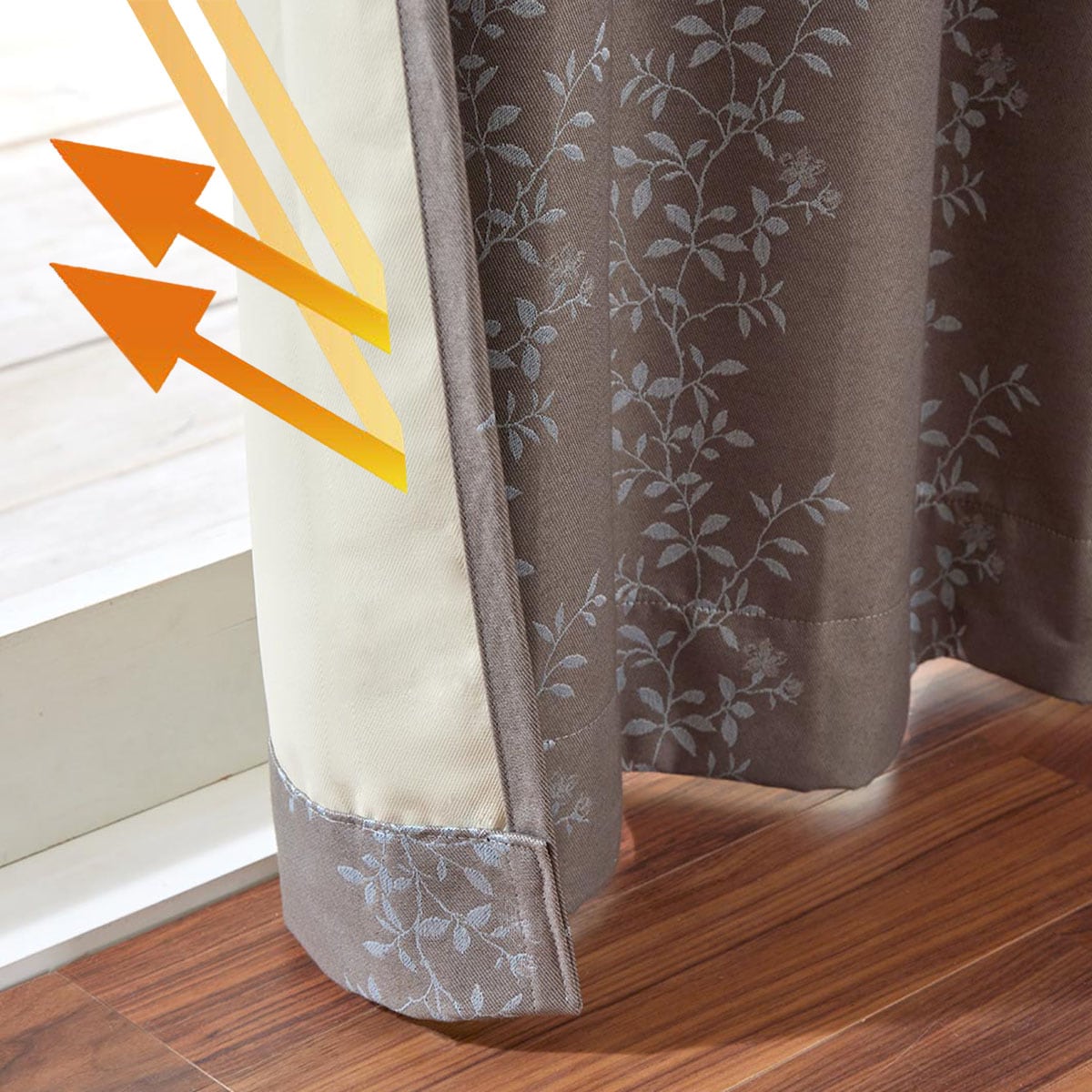 省エネ仕様 ラインリーフ柄ジャカード織カーテン(1級遮光・遮熱保温)