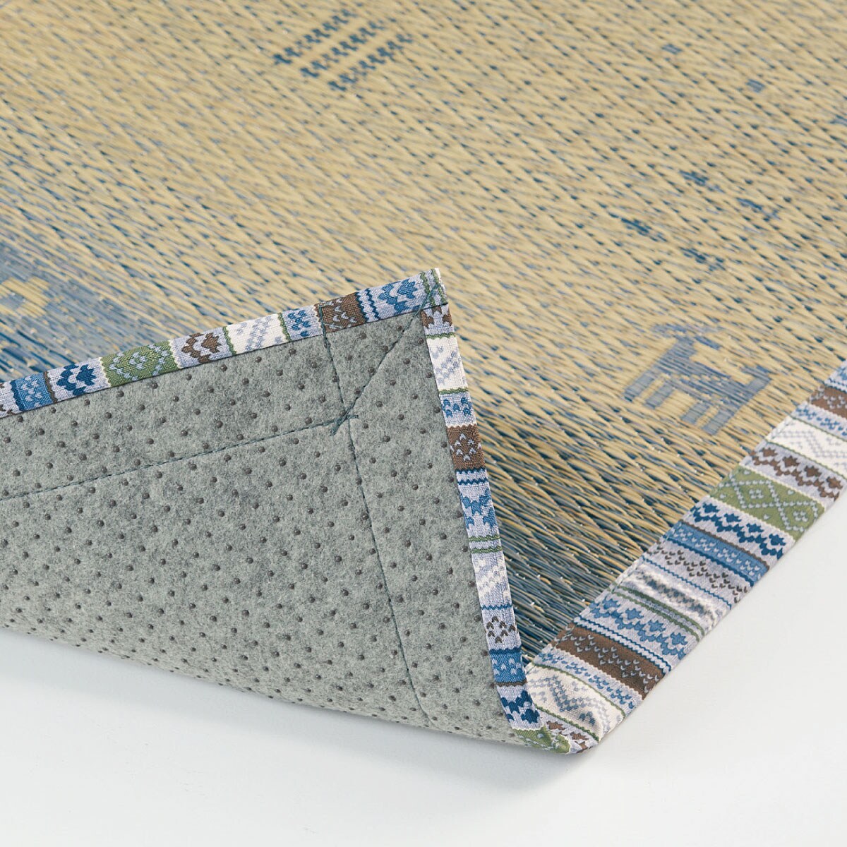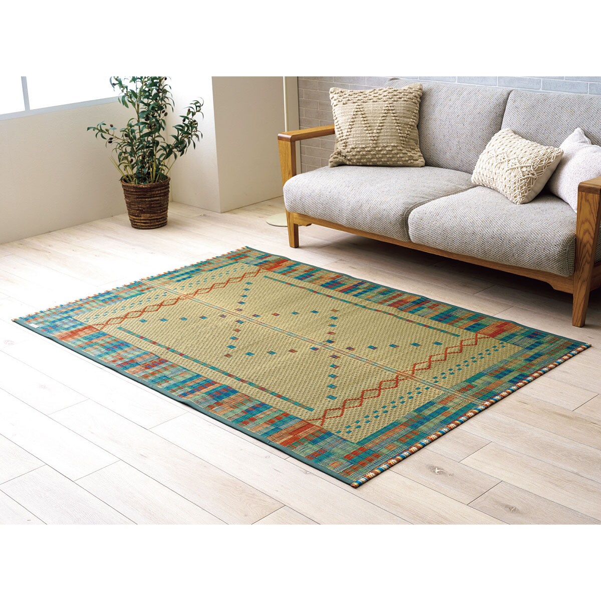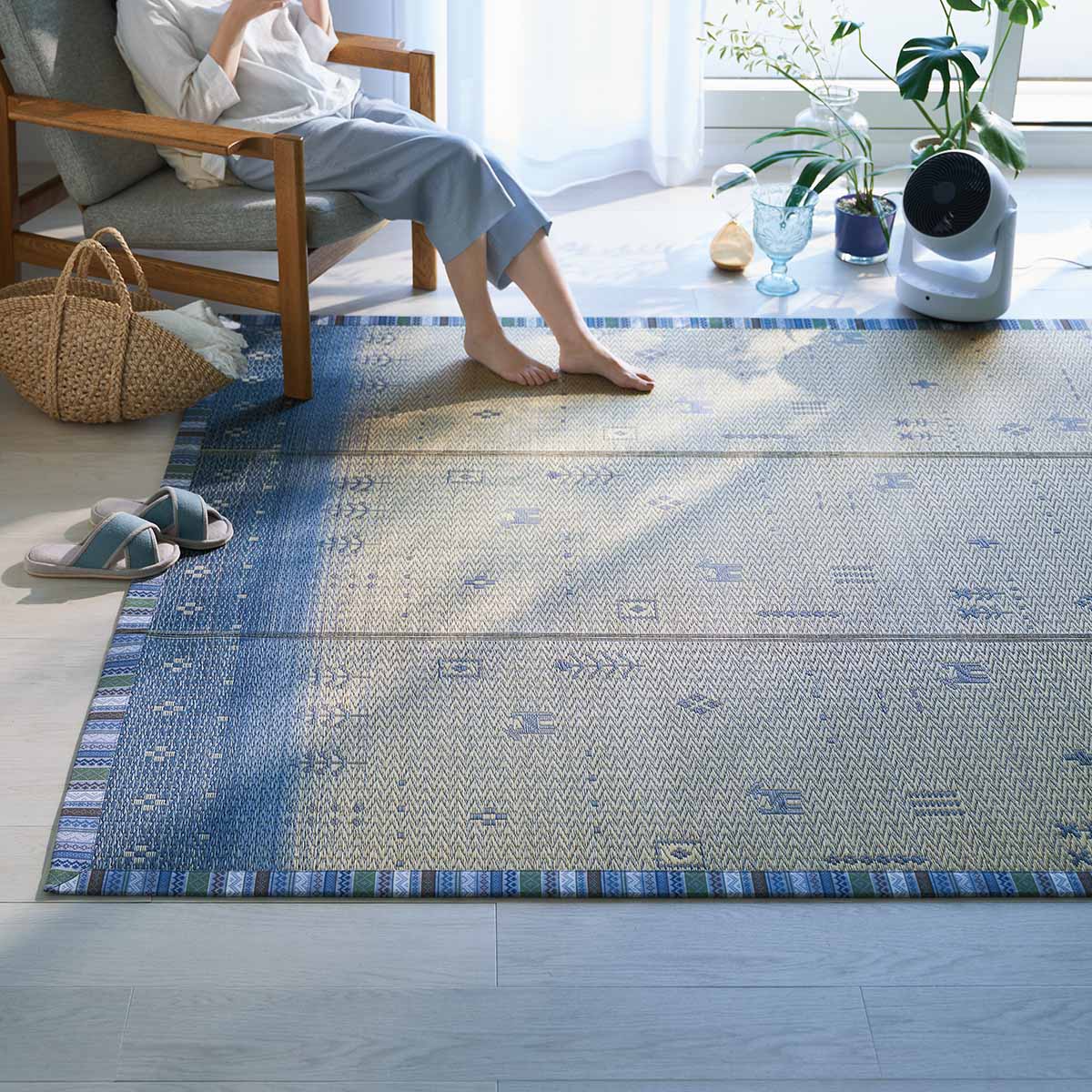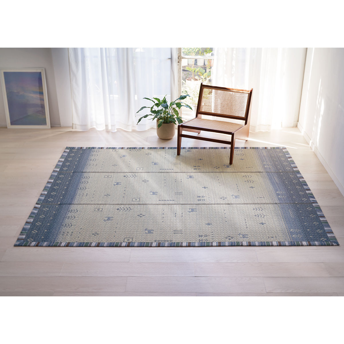 ブルー系(ギャッベ柄)フレッシュなギャッベ風デザインのい草ラグです。