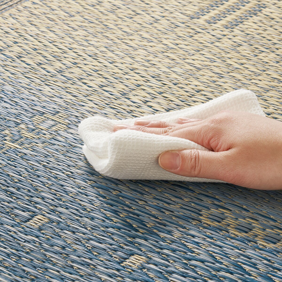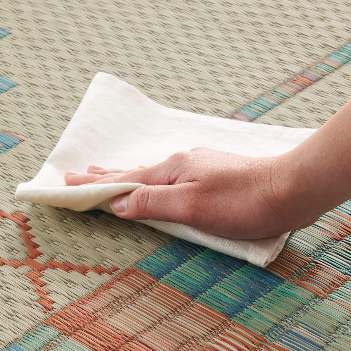 グリーン系汚れやほこりは、い草の目に沿ってほうきや乾いた布などで取り除いてください。