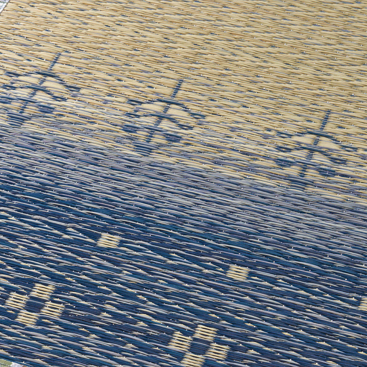 生地拡大(ブルー系)色染めしたい草を編み込んでグラデーションに仕上げています。