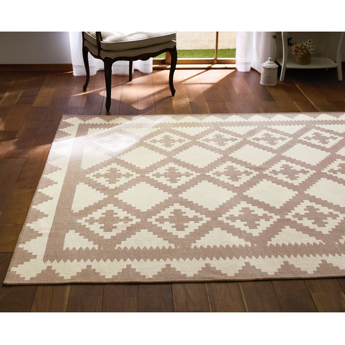 ベージュ系(横240×縦176cm)足離れがよく、爽やかなデザインの綿混平織りラグです。