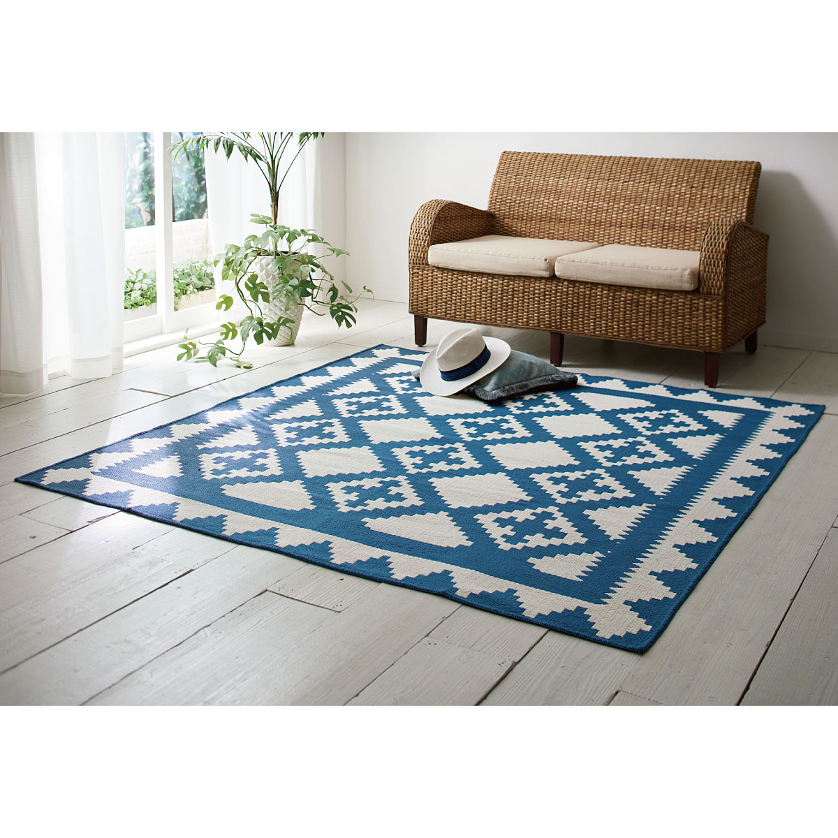 ブルー系(横176×縦176cm)シンプルでおしゃれな幾何学模様がお部屋を爽やかな印象に演出します。