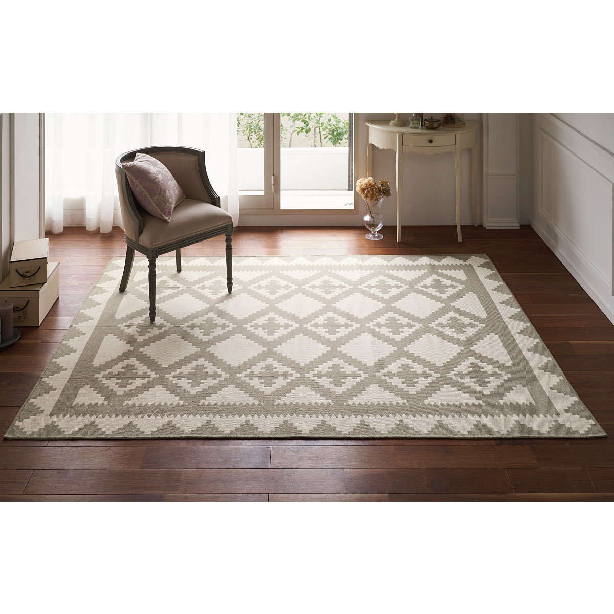 ベージュ系(横240×縦176cm)足離れがよく、爽やかなデザインの綿混平織りラグです。