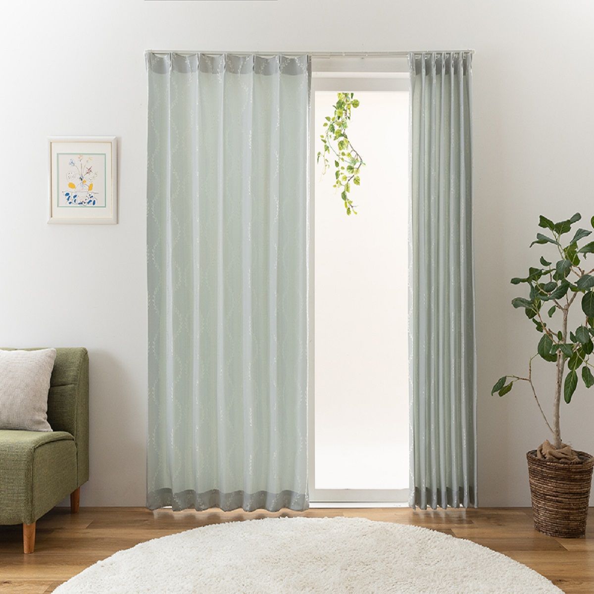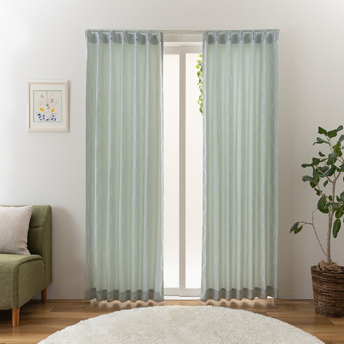 【ネット限定】〔形状記憶加工付き〕お部屋の雰囲気やインテリアになじみやすい、定番のリーフ柄と波柄を掛け合わせたカーテン。自然の光を取り込みたい、朝日を浴びて起きるのが好きという方におすすめの非遮光タイプ。