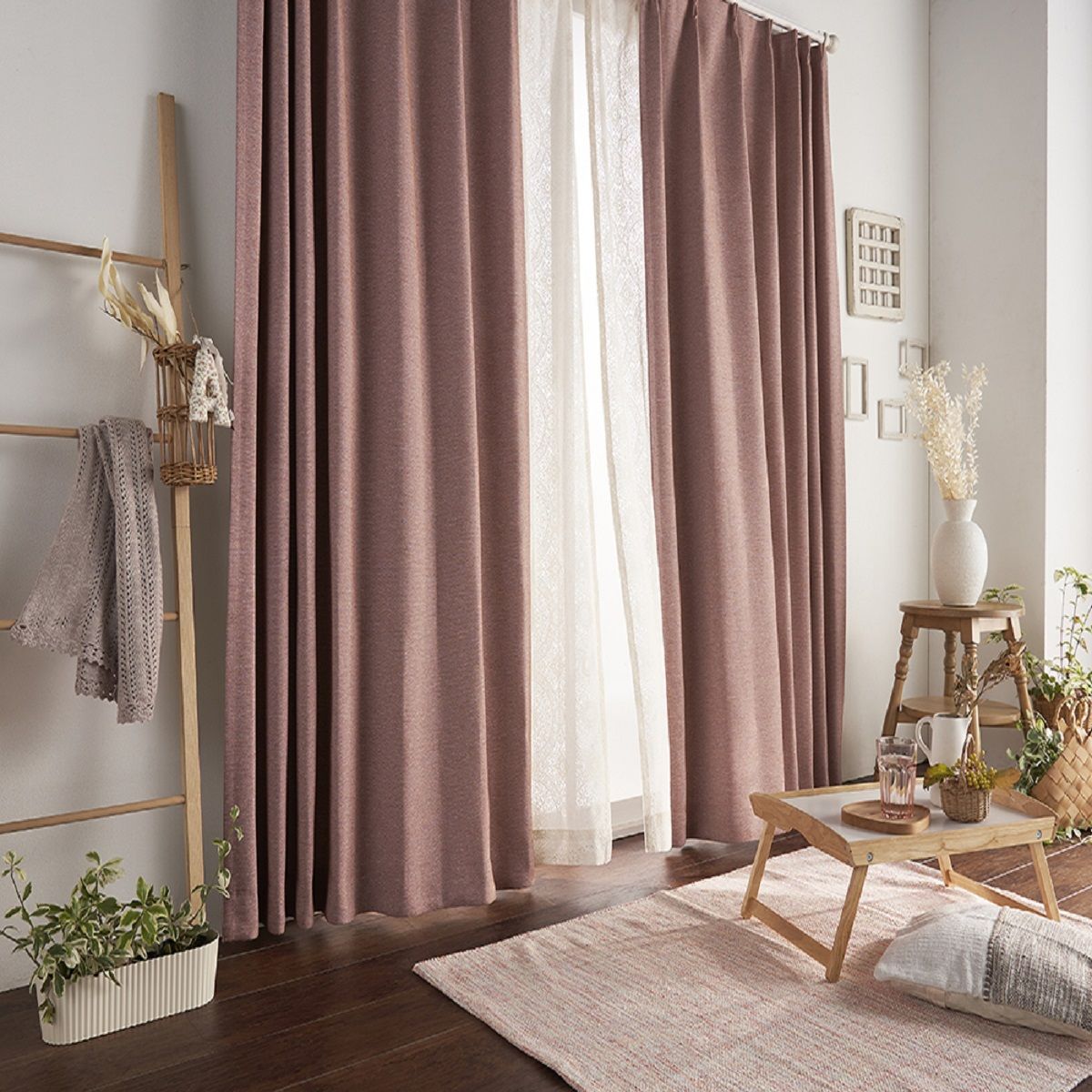 レッド系ウールのような風合いの、無地調遮光カーテンです。
