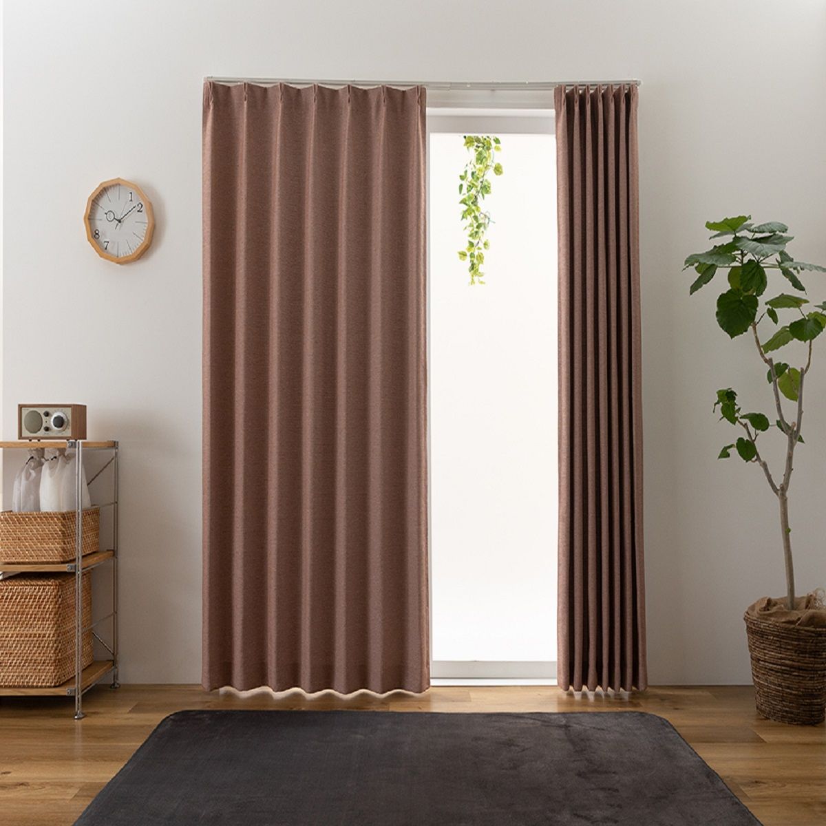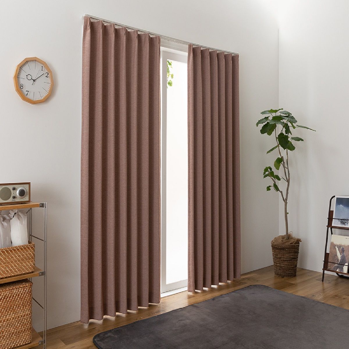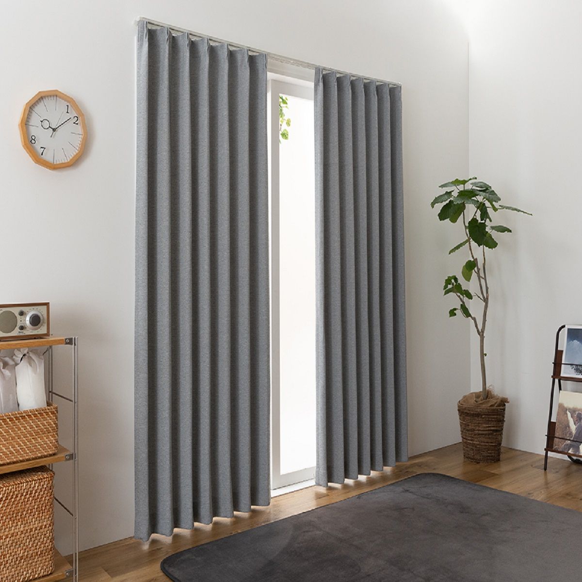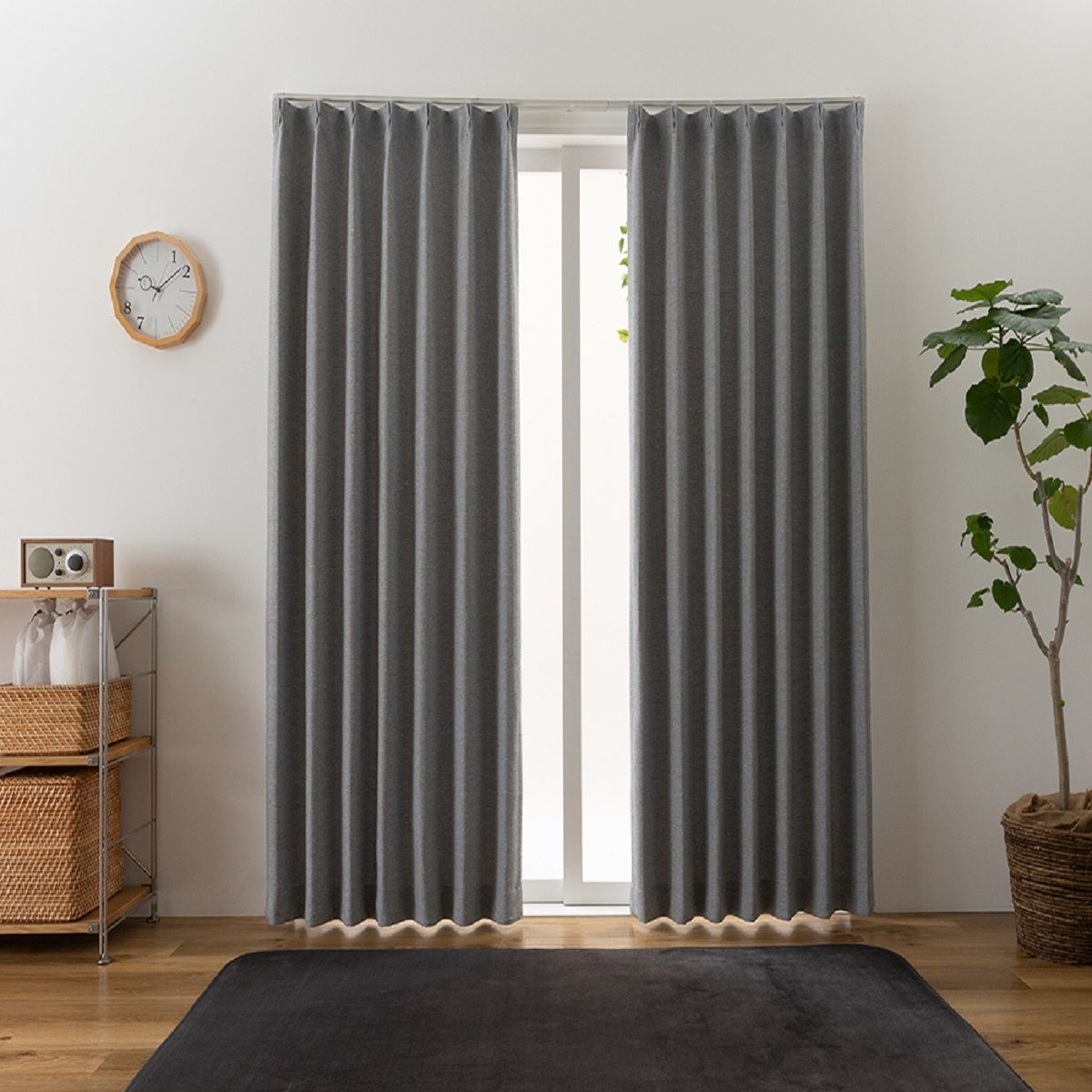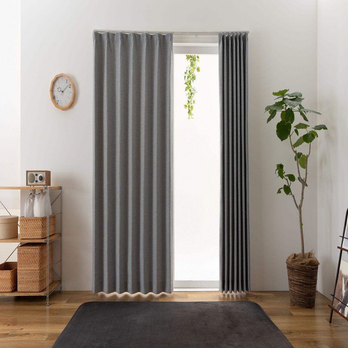 【ネット限定】〔形状記憶加工付き〕北欧テイストなウール調の風合いが深みのある空間を演出する、無地調の遮光カーテンです。ほどよく光をやわらげ、自然な明るさを感じられる3級遮光。お部屋を暗くしたくないという方におすすめです。
