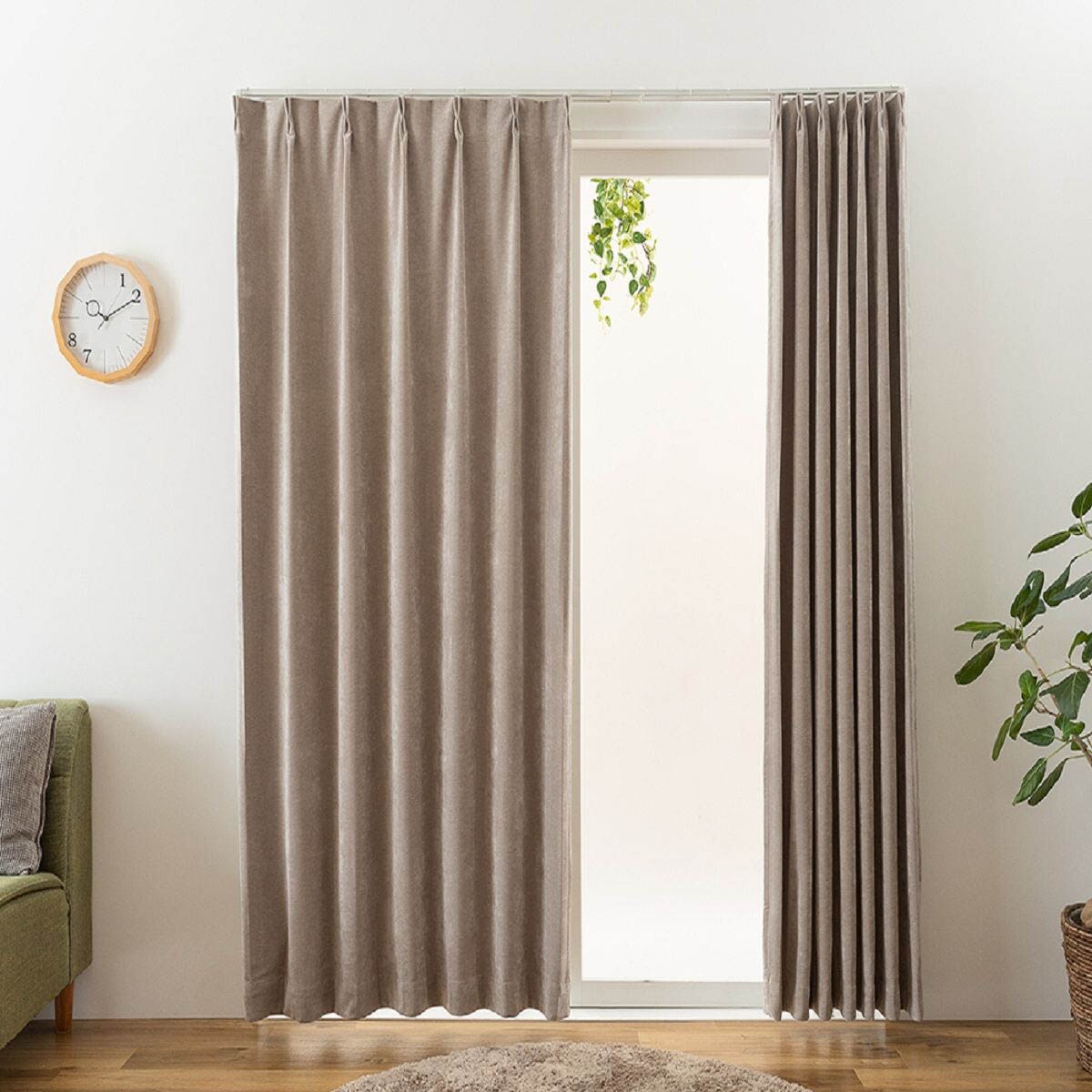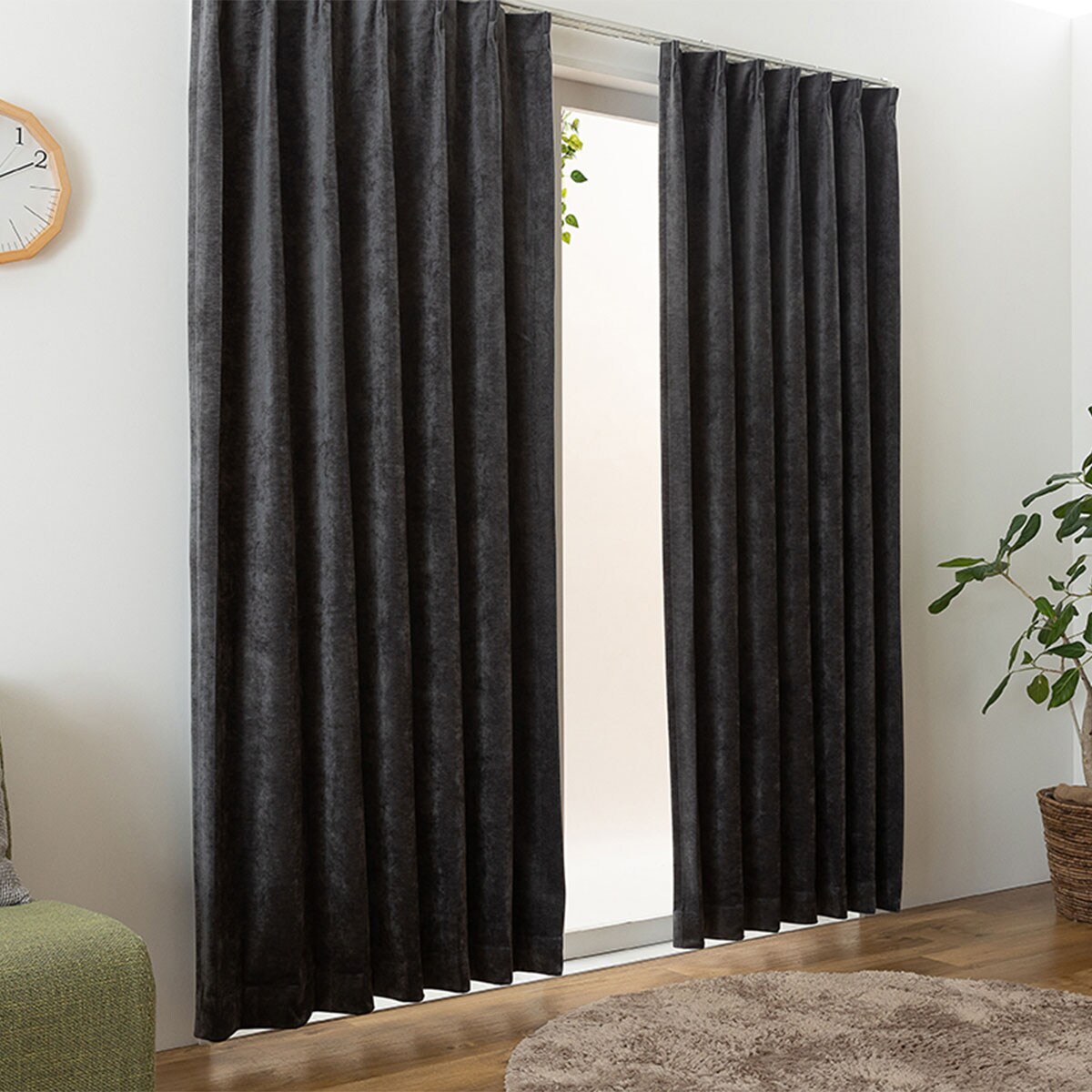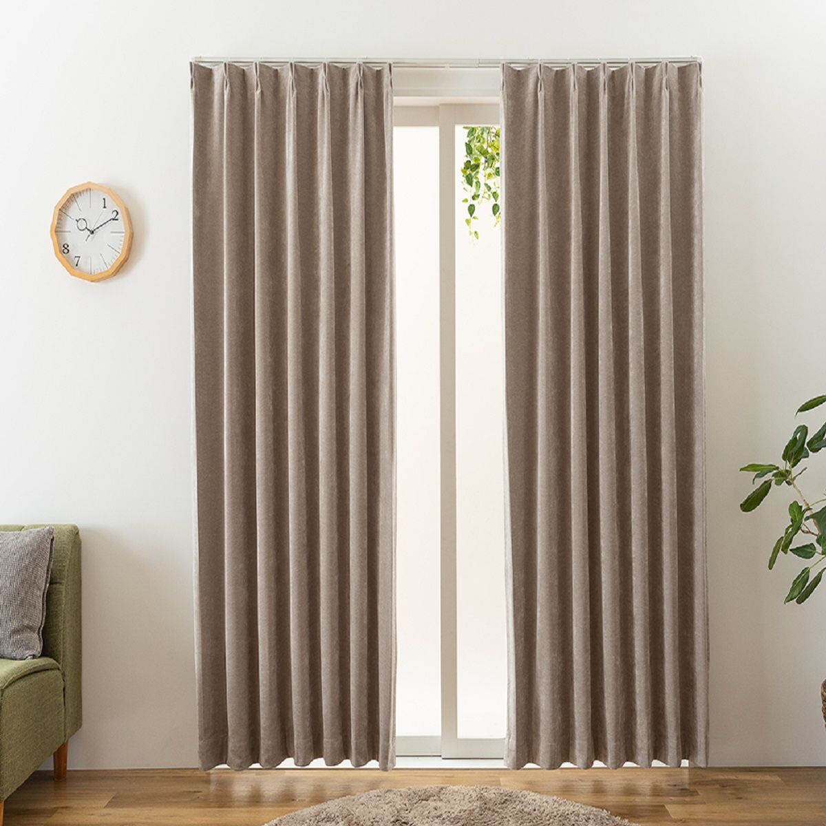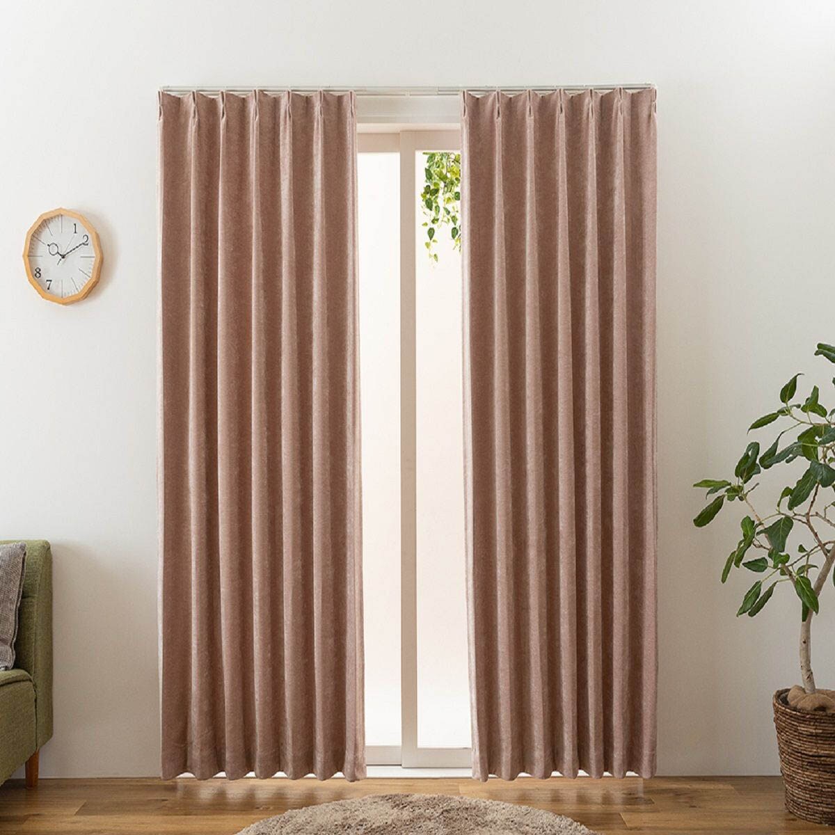 【ネット限定】ベロア調の上品な質感がおしゃれな遮光カーテンです。遮光効果で気になる光をしっかりカット。いつものお部屋をラグジュアリーな空間に彩ります。