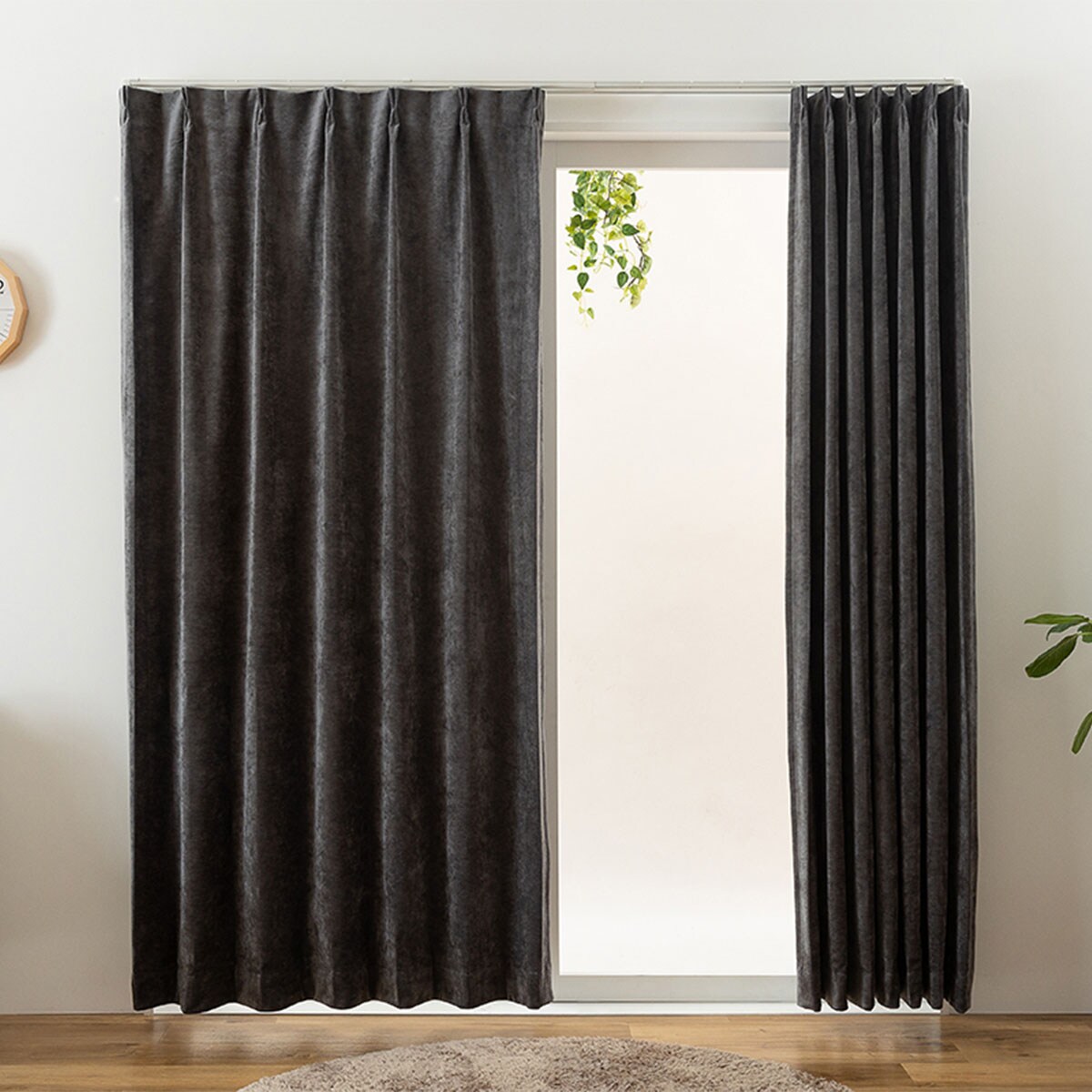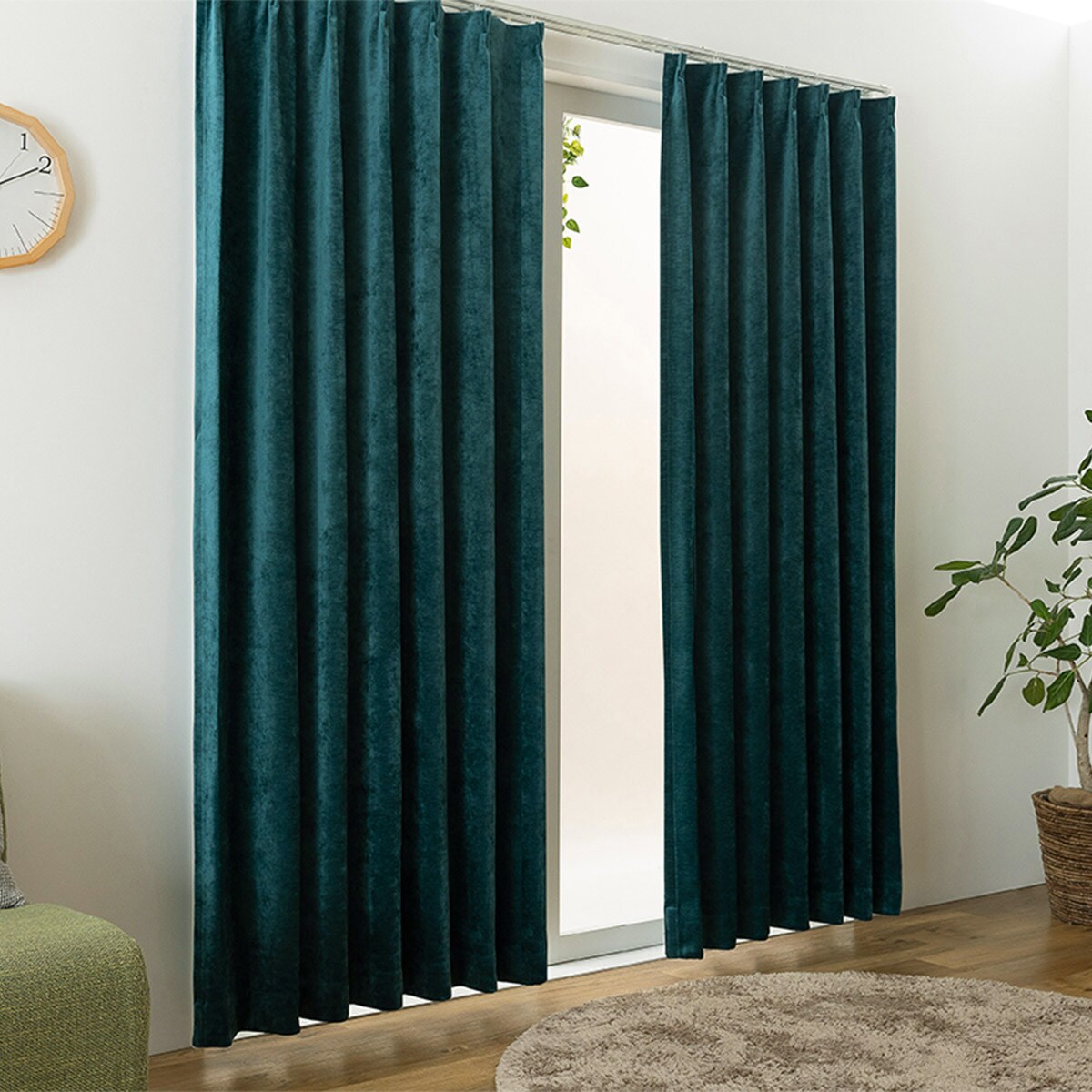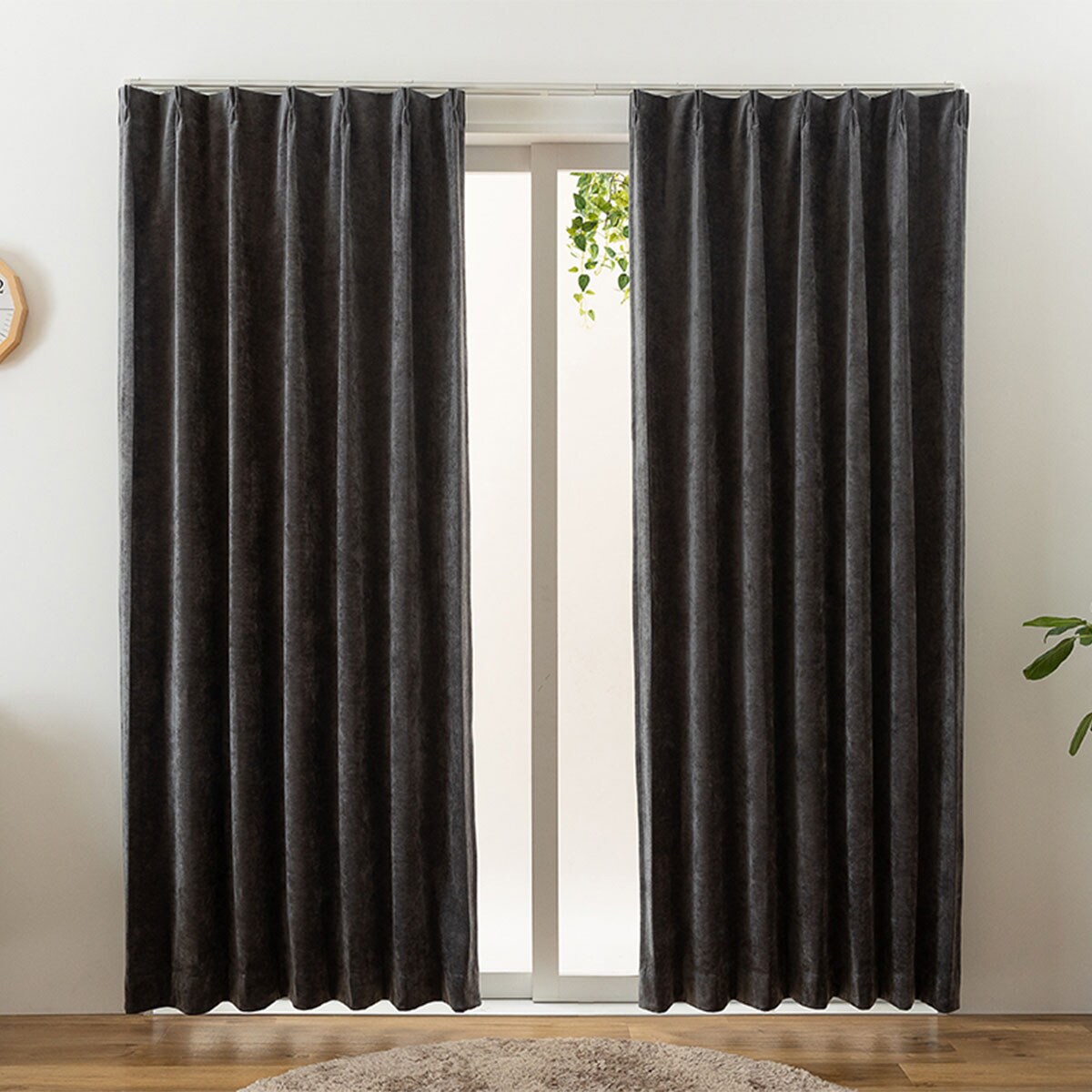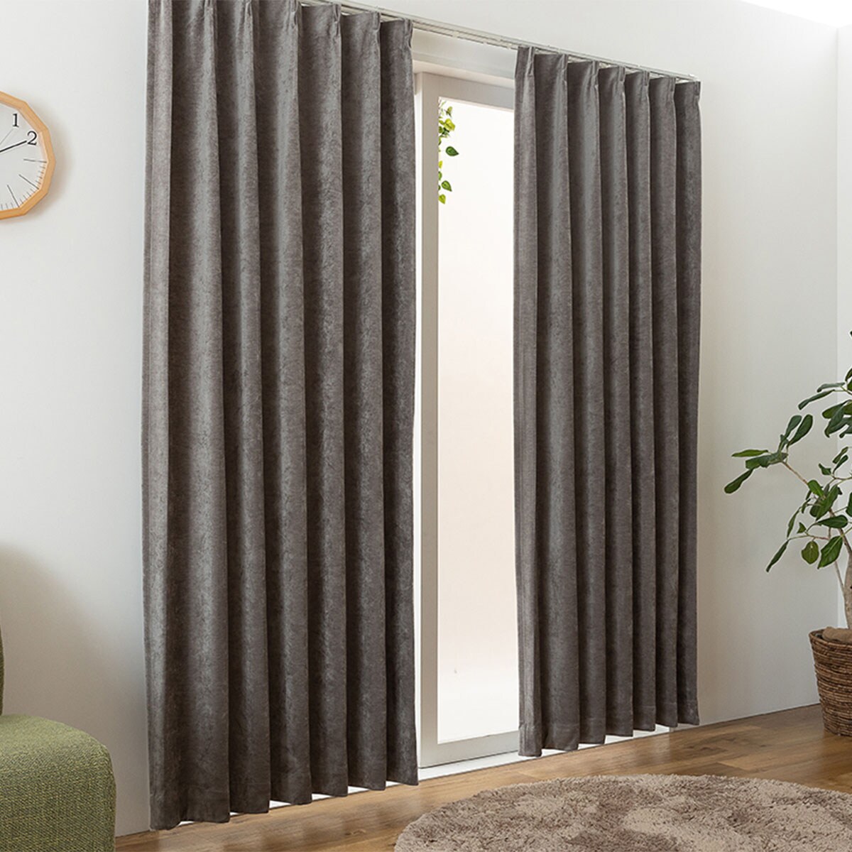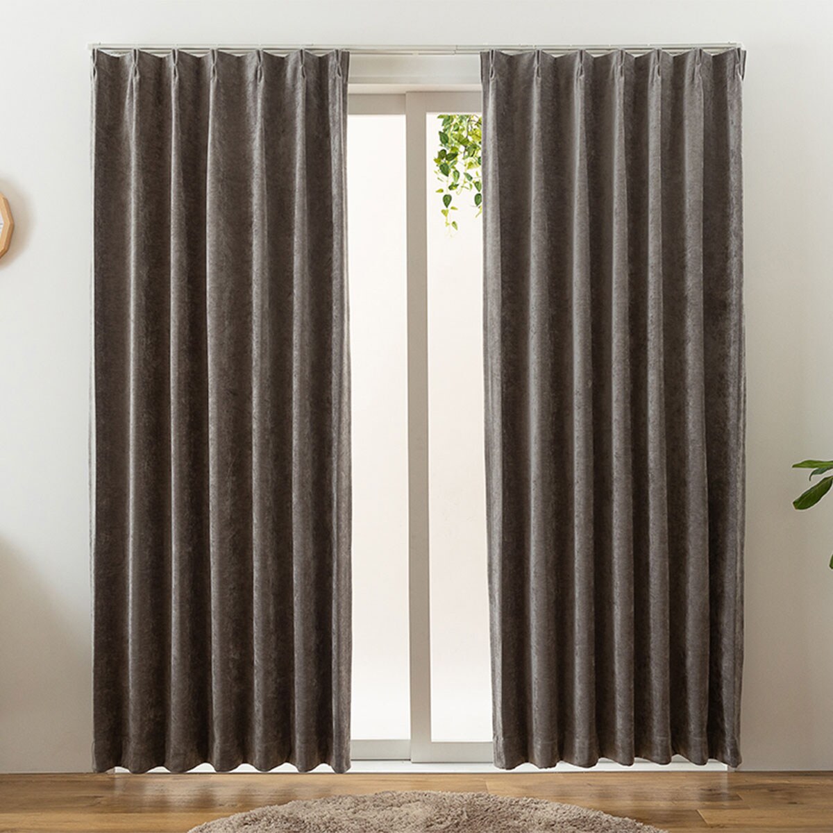 【ネット限定】ベロア調の上品な質感がおしゃれな遮光カーテンです。遮光効果で気になる光をしっかりカット。いつものお部屋をラグジュアリーな空間に彩ります。