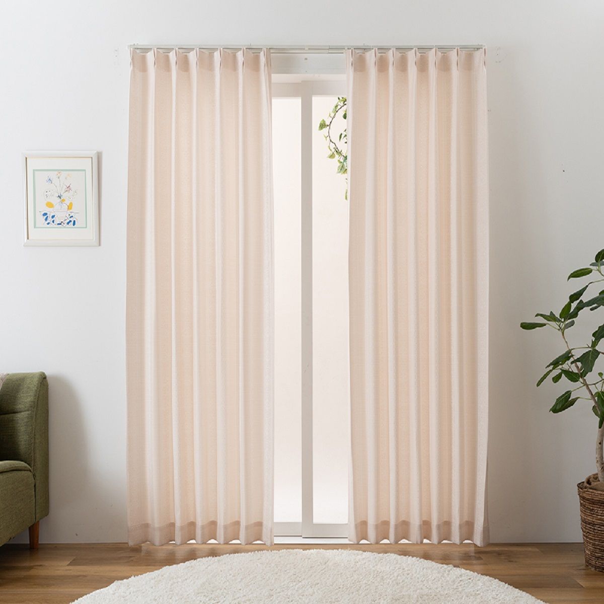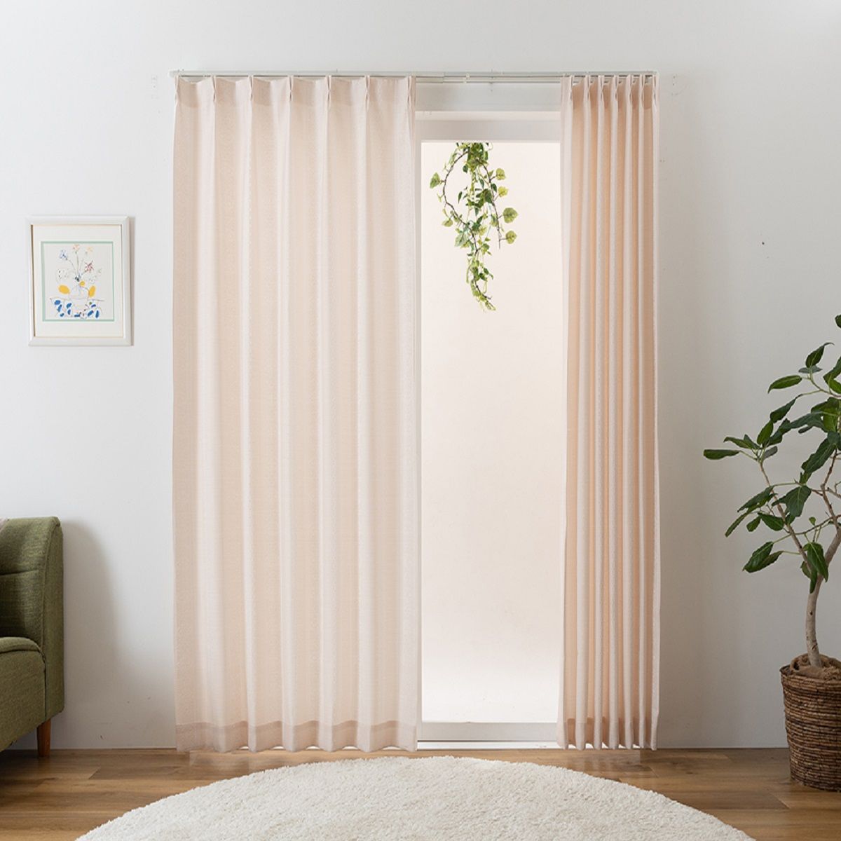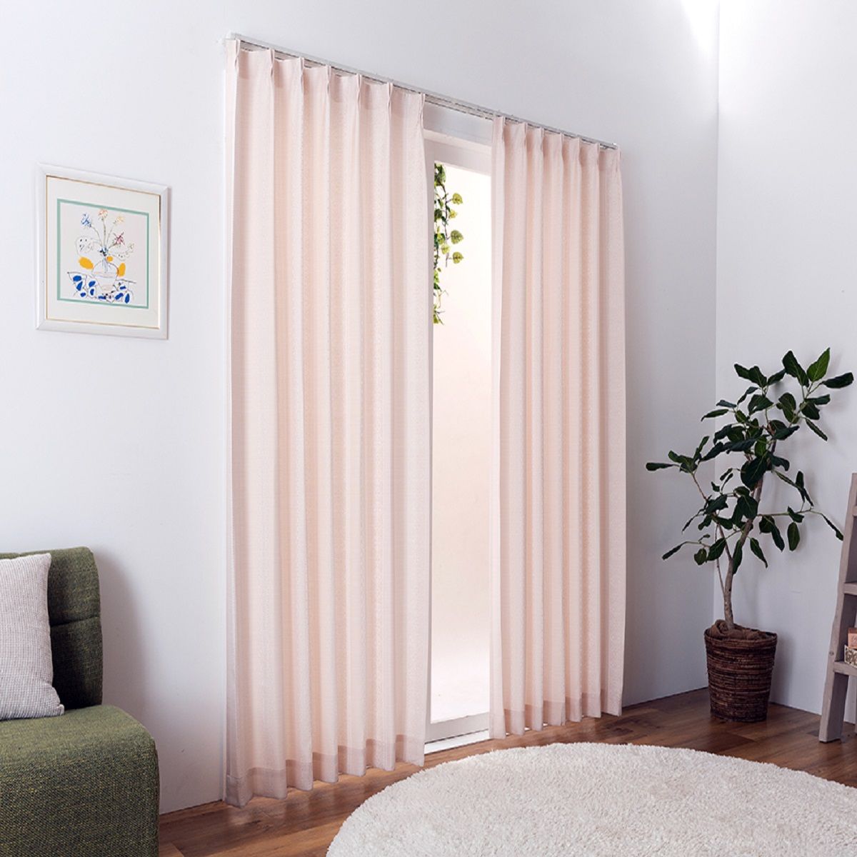 ペールピンクナチュラルな明るい光がお部屋に入る非遮光タイプ。