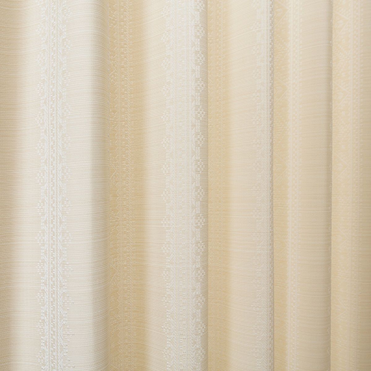 刺繍のステッチのような表現をストライプ状にデザインした、国産ジャカード織りカーテンです。落ち着いた淡い色味と風合いのある生地は、優しく高級感のある雰囲気を演出。エレガントやフェミニンなお部屋にも相性バッチリです。自然の光を取り込みたい、朝日を浴びて起きるのが好きという方におすすめの非遮光タイプ。自然な光の陰影をインテリアの一部として楽しむことができるのも魅力です。形状記憶加工付きで裾が広がりにくく、きれいなドレープを保ちます。ご家庭の洗濯機で気軽に洗えます。