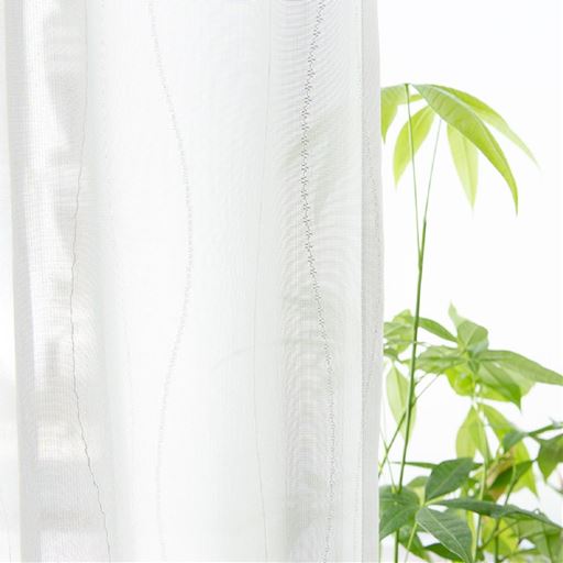 どんなドレープカーテンにも合わせやすい、シンプルでスタイリッシュな印象の波柄レースカーテンです。柄部分にはやや光沢感があり、遠くから見るとダイヤ柄のようにも見える美しいデザイン。ミラー効果で日中の外からの視線を遮ります。やや透け感もあるので中から外の景色も見られます。安心の防炎機能付きなので高層マンションにお住まいの方はもちろん、もしもの時に備えたい方にも。小窓から幅広窓まで対応できる、充実のサイズ展開をご用意しました。ご家庭の洗濯機で気軽に洗えます。