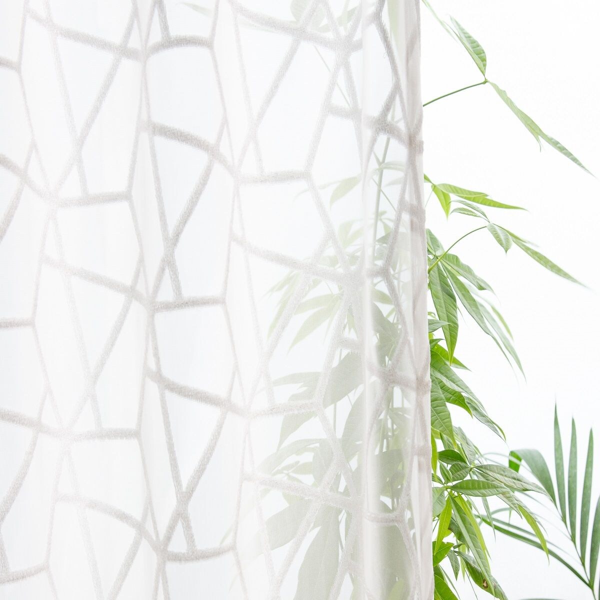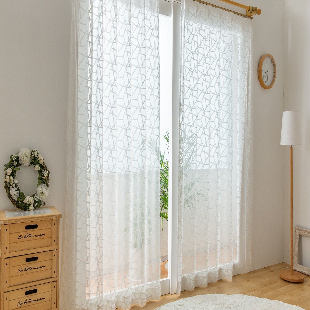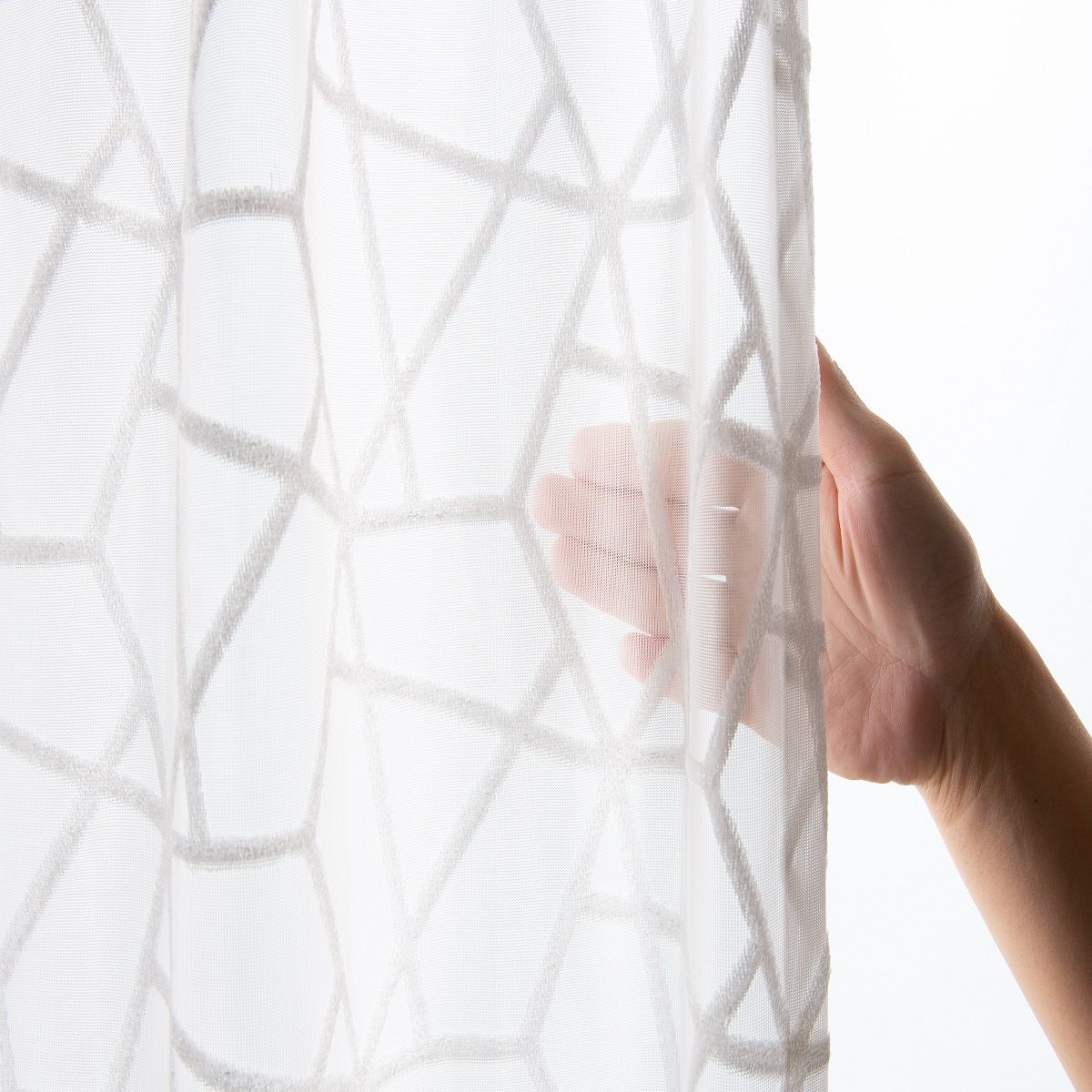 ホワイト立体的な幾何学ラインが美しい、ジャカードレースカーテンです。