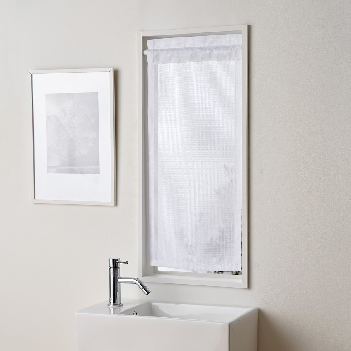 サイズが選べる小窓用目隠しレースカーテン(防炎遮熱)