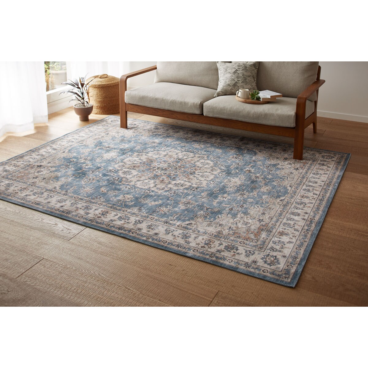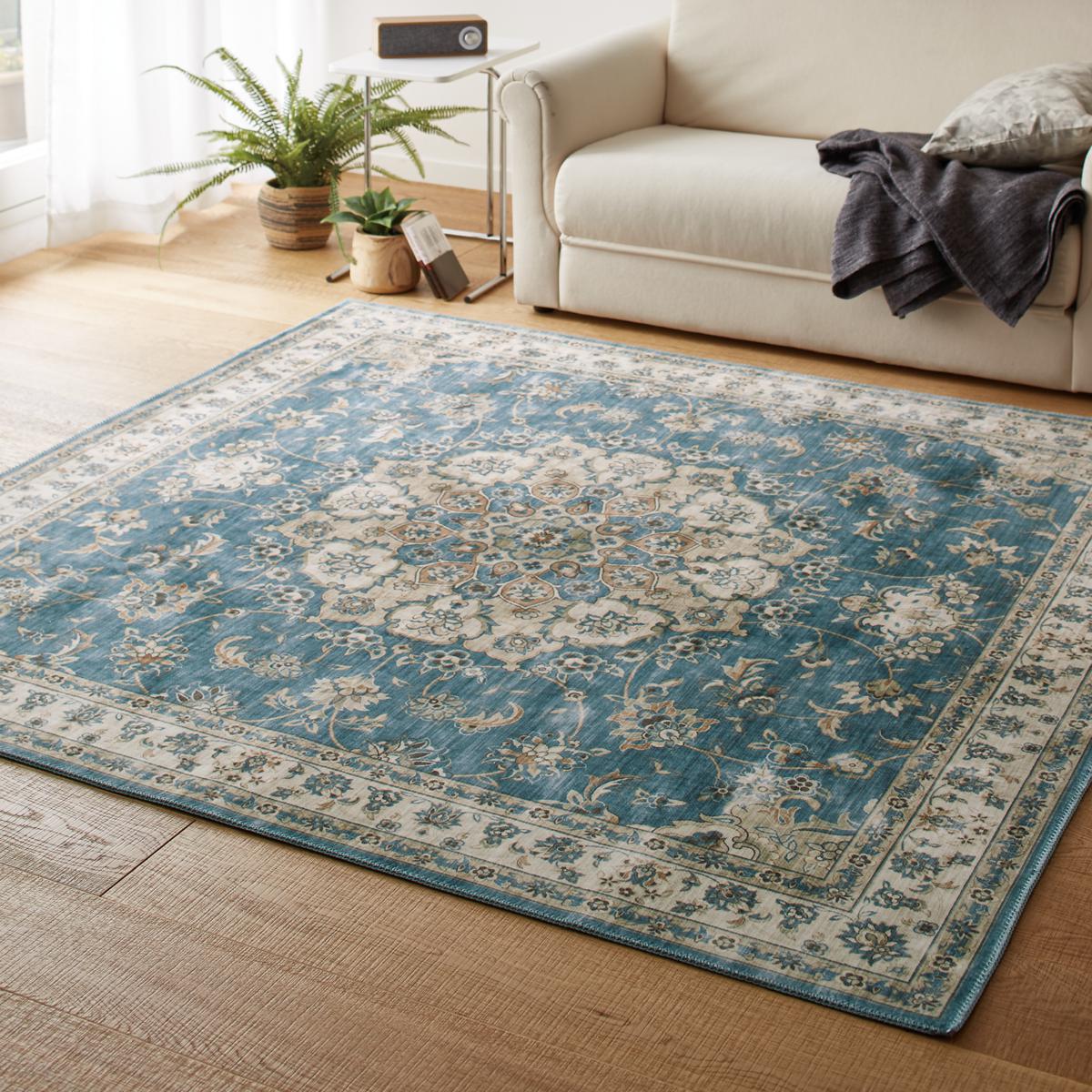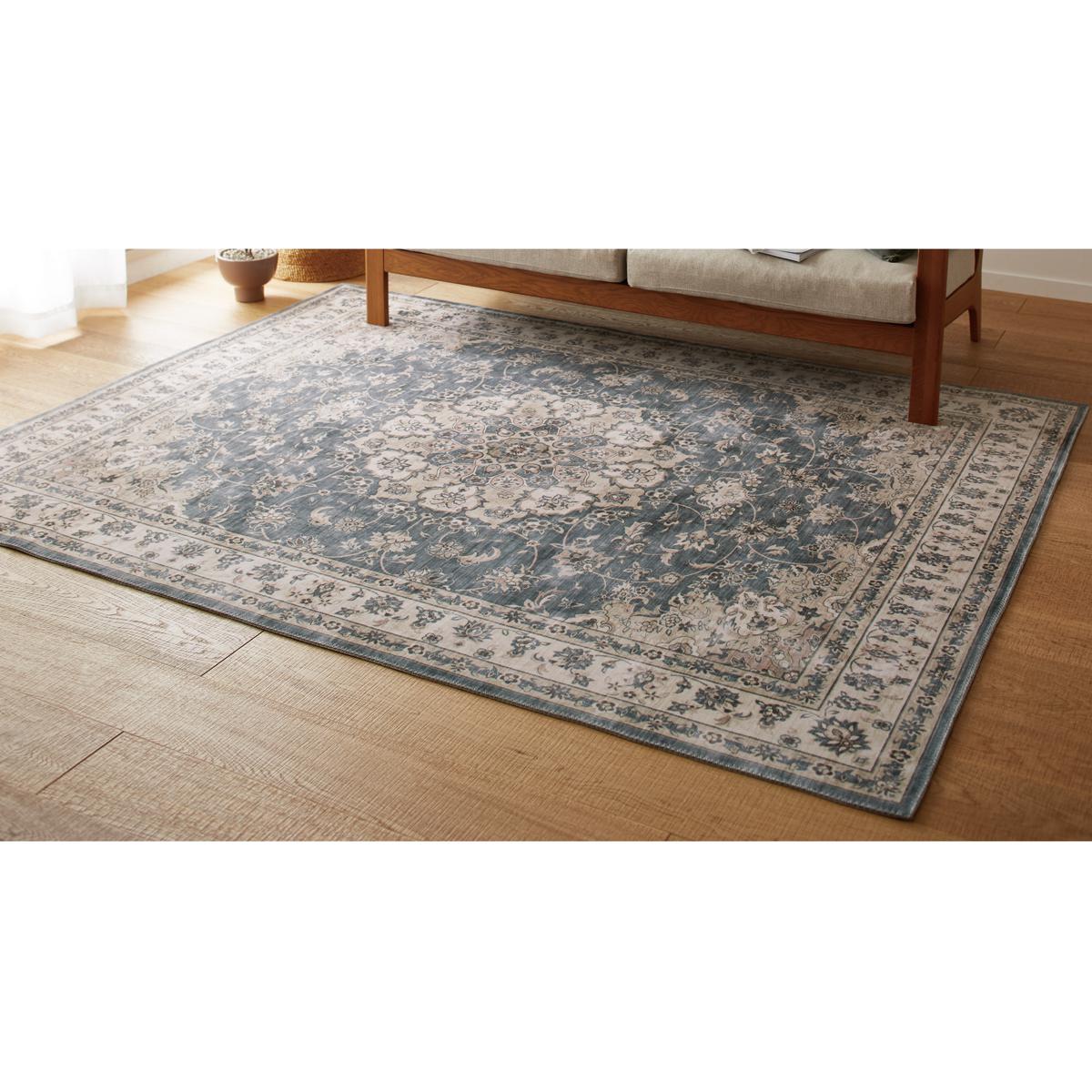 ブルー(横190×縦190cm)お部屋に馴染む緻密な色柄のヴィンテージ絨毯風ラグです。