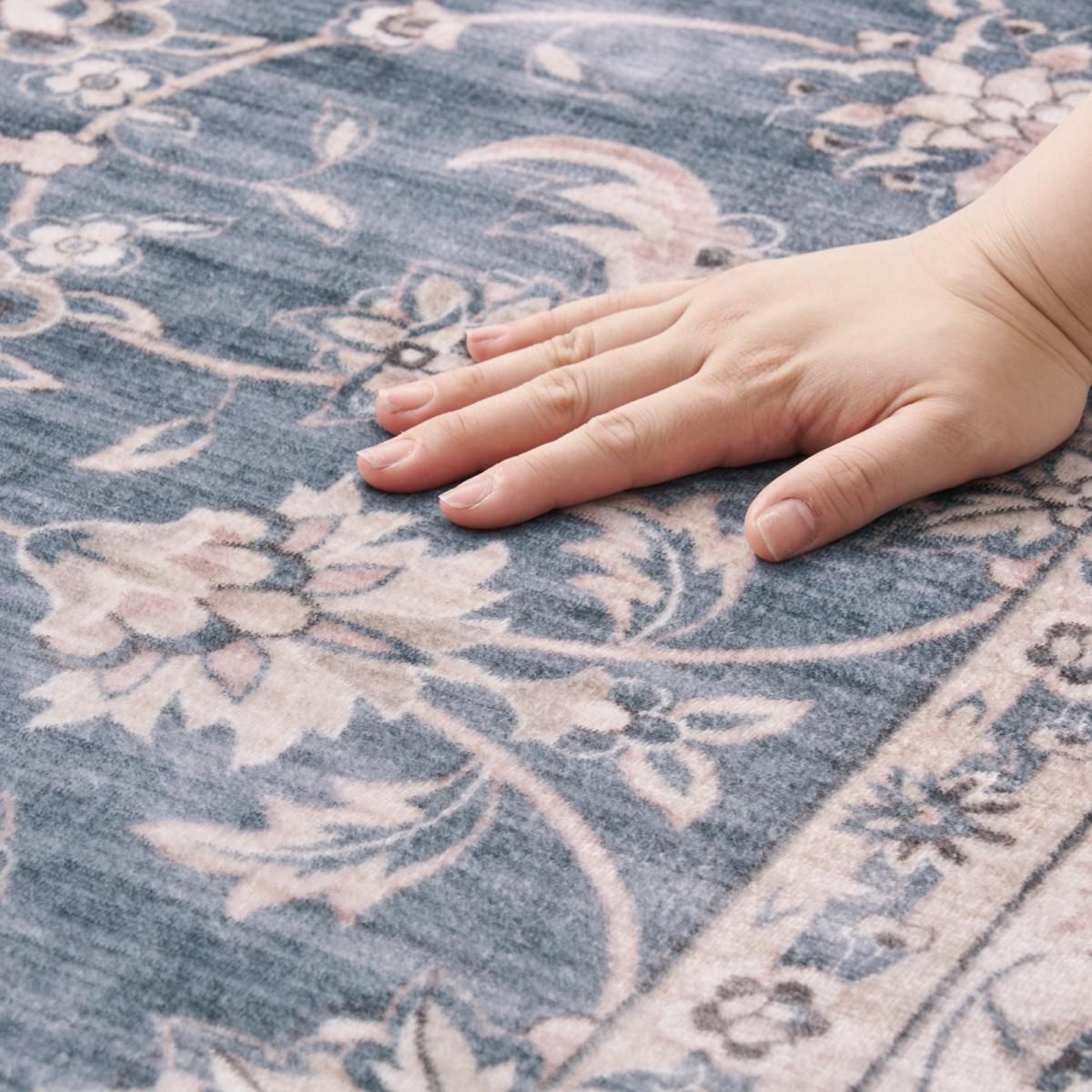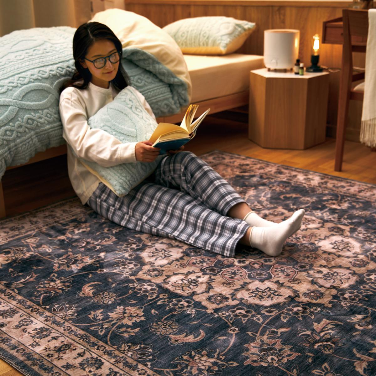 お部屋になじむ緻密な色柄のヴィンテージ絨毯風ラグです。短毛なのでゴミが絡みにくくお手入れもラクラク♪なめらかな優しい肌ざわりが特徴です。