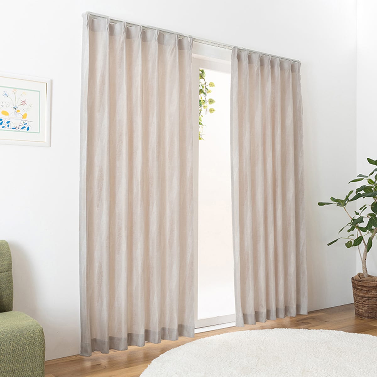 【ネット限定】〔形状記憶加工付き〕かすれ模様が奥ゆかしさを感じさせる、上品で優しいデザインのカーテンです。風合いのある生地を通して、ナチュラルな明るい光がお部屋に入る非遮光タイプです。