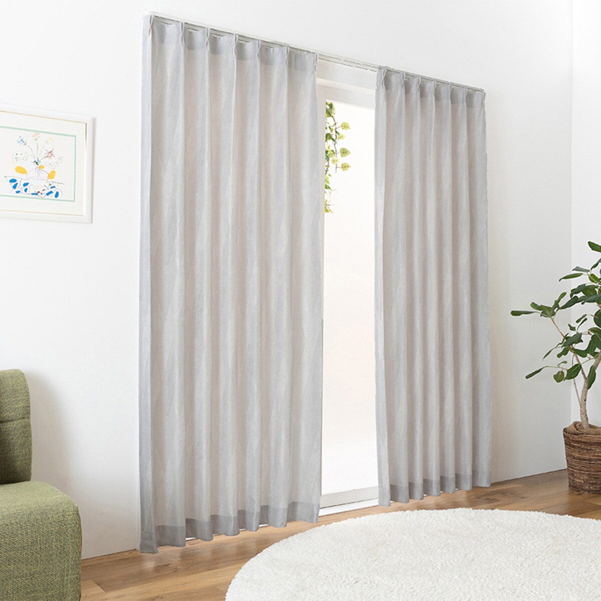 【ネット限定】〔形状記憶加工付き〕かすれ模様が奥ゆかしさを感じさせる、上品で優しいデザインのカーテンです。風合いのある生地を通して、ナチュラルな明るい光がお部屋に入る非遮光タイプです。