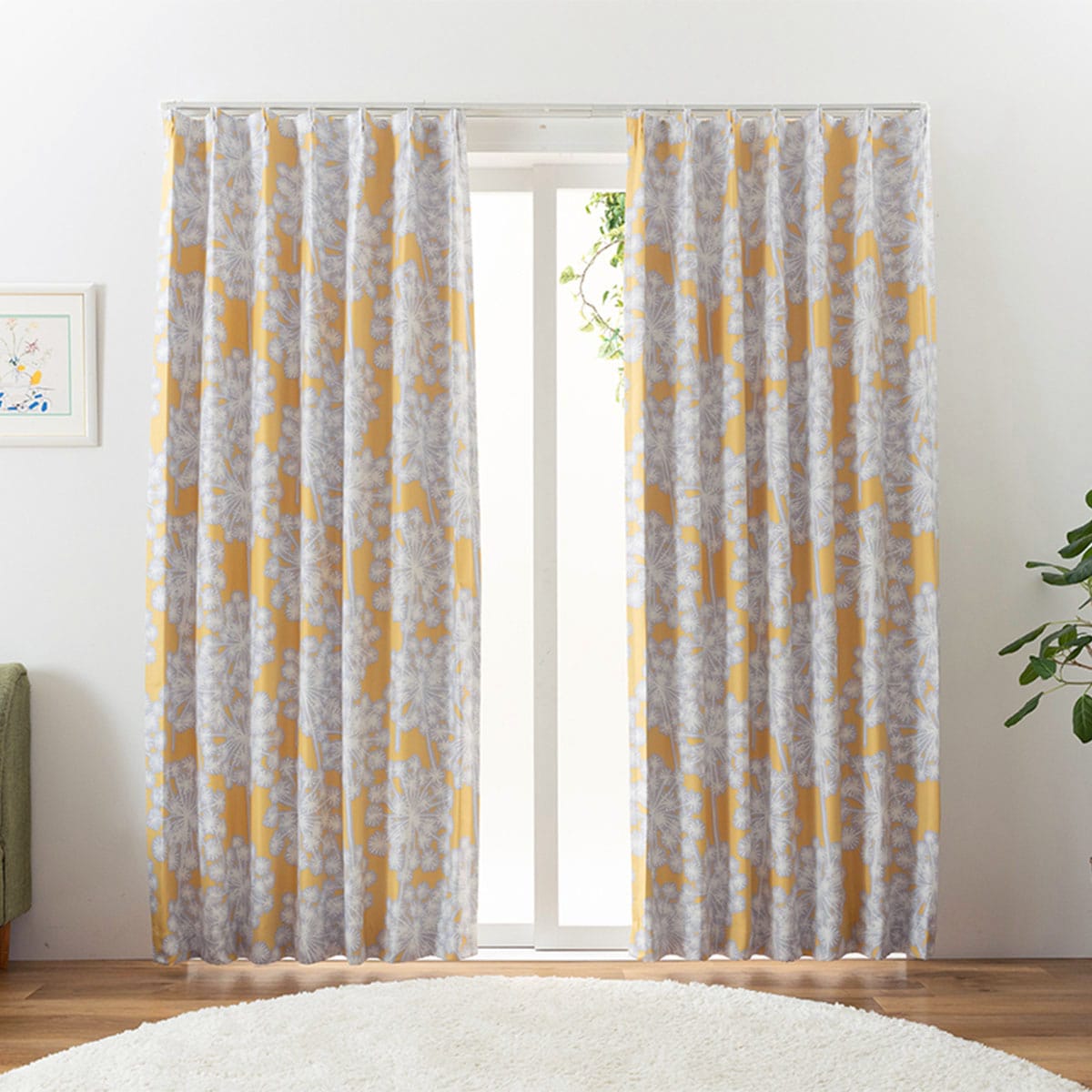 燃えにくい難燃糸を使用し、高層マンションにお住まいの方はもちろん地震・火事に備えたい方もより安心安全に使える防炎カーテンです。温かみのあるトレンドの黄色とラフな花柄がマッチした可愛らしいデザインで、窓辺を華やかに彩ります。2級遮光で気になる光をほどよく遮り、プライバシーも守ります。形状記憶加工を施しているので、届いたときからキレイなドレープが長続き。小窓から幅広窓まで対応できる、充実のサイズ展開をご用意しました。ご家庭の洗濯機で気軽に洗えます。