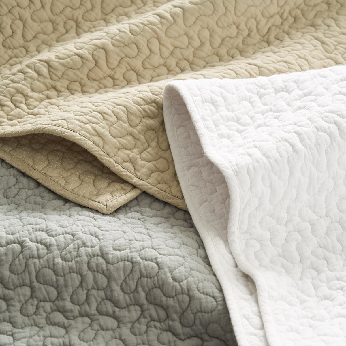 (上から) ベージュ・アイボリー・グレー綿100%のキルティング生地で心地いい肌ざわり。