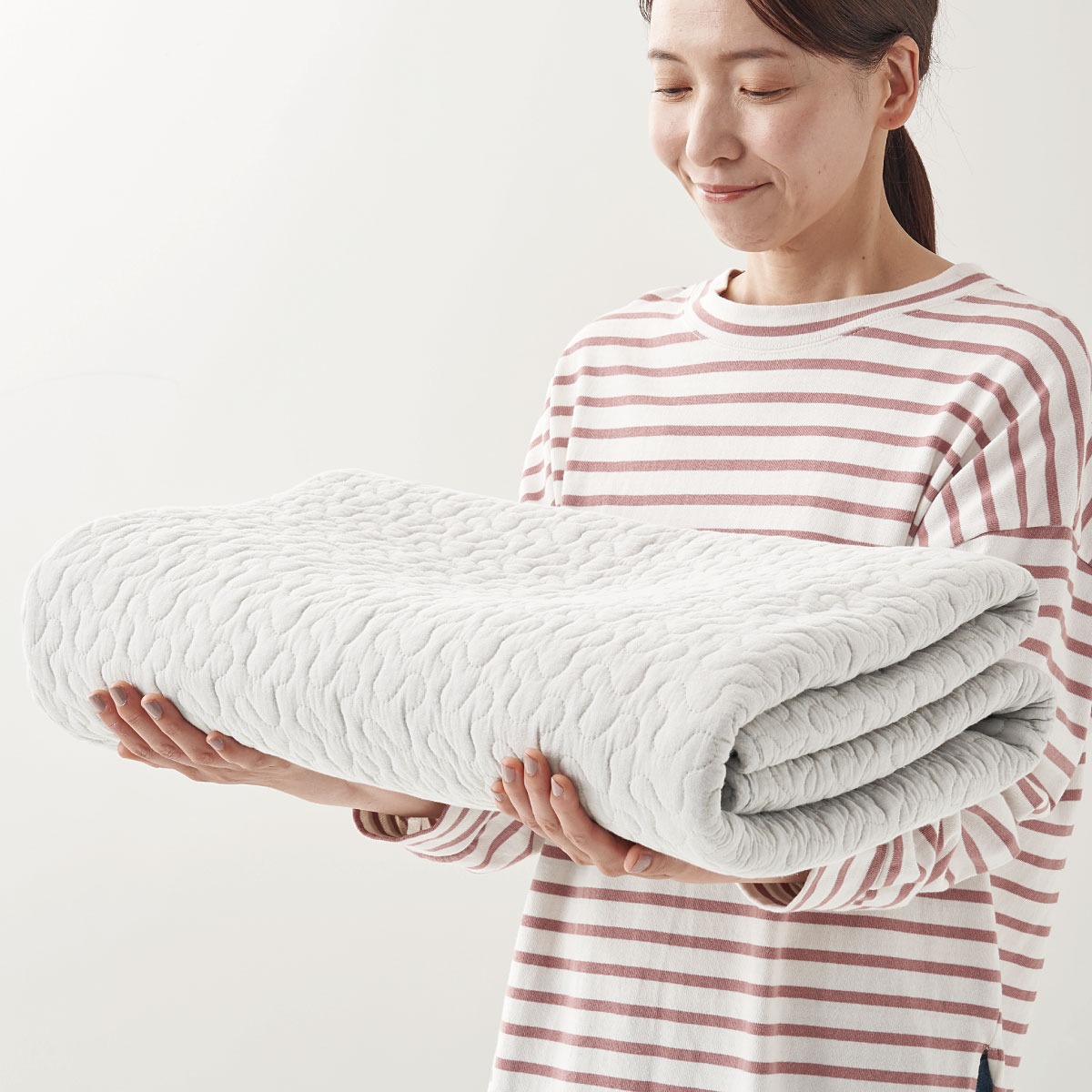 「上だけ」ならすぐ洗える! キルティングラグとしても使える、綿100%のマルチカバーです。やさしい肌ざわりで、使うほどにやわらかく心地のよい風合いに。アンダーラグとのセット買いがおすすめです。
