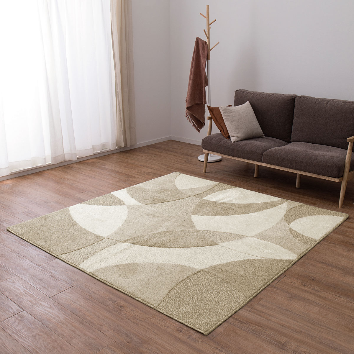 ベージュ(横190×縦190cm)お部屋になじむナチュラルなカラーと立体的な幾何学模様がポイント。