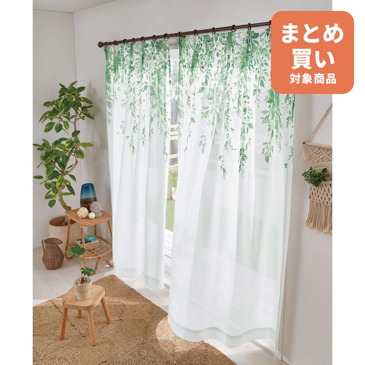 • ホワイト 垂れ下がるボタニカルリーフのモチーフが、夏のお部屋を爽やかに彩ります。