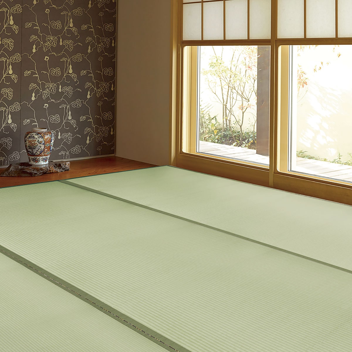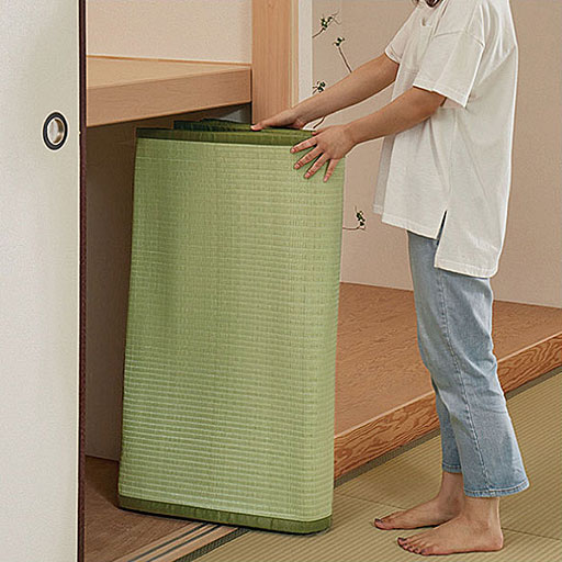 まるでい草のような、素足でも気持ちいいサラッとした足ざわりでです。いつもの床に敷くだけで和室に簡単チェンジするので、お部屋の雰囲気変えにもおすすめです!選べる4色でお部屋の印象を明るく快適にイメージチェンジしませんか♪水に強く丈夫な素材なので、汚れてもサッと拭くだけなのでお手入れ簡単!折りたたんでコンパクトに収納もできます。