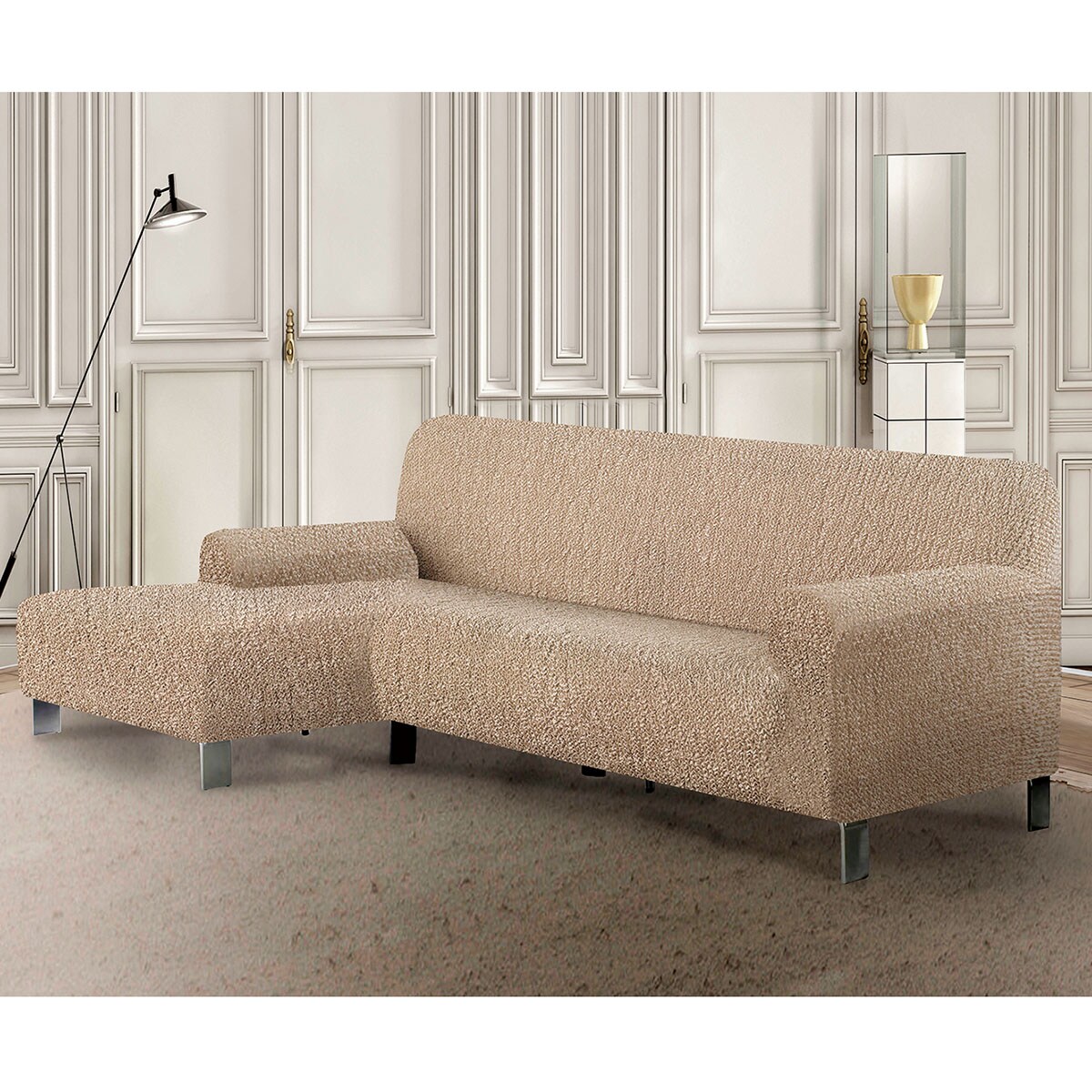 • ベージュ L字型右(コーナーカウチ右用)<br>立体的な凹凸とカラーがおしゃれなイタリア製フィットソファカバーです。