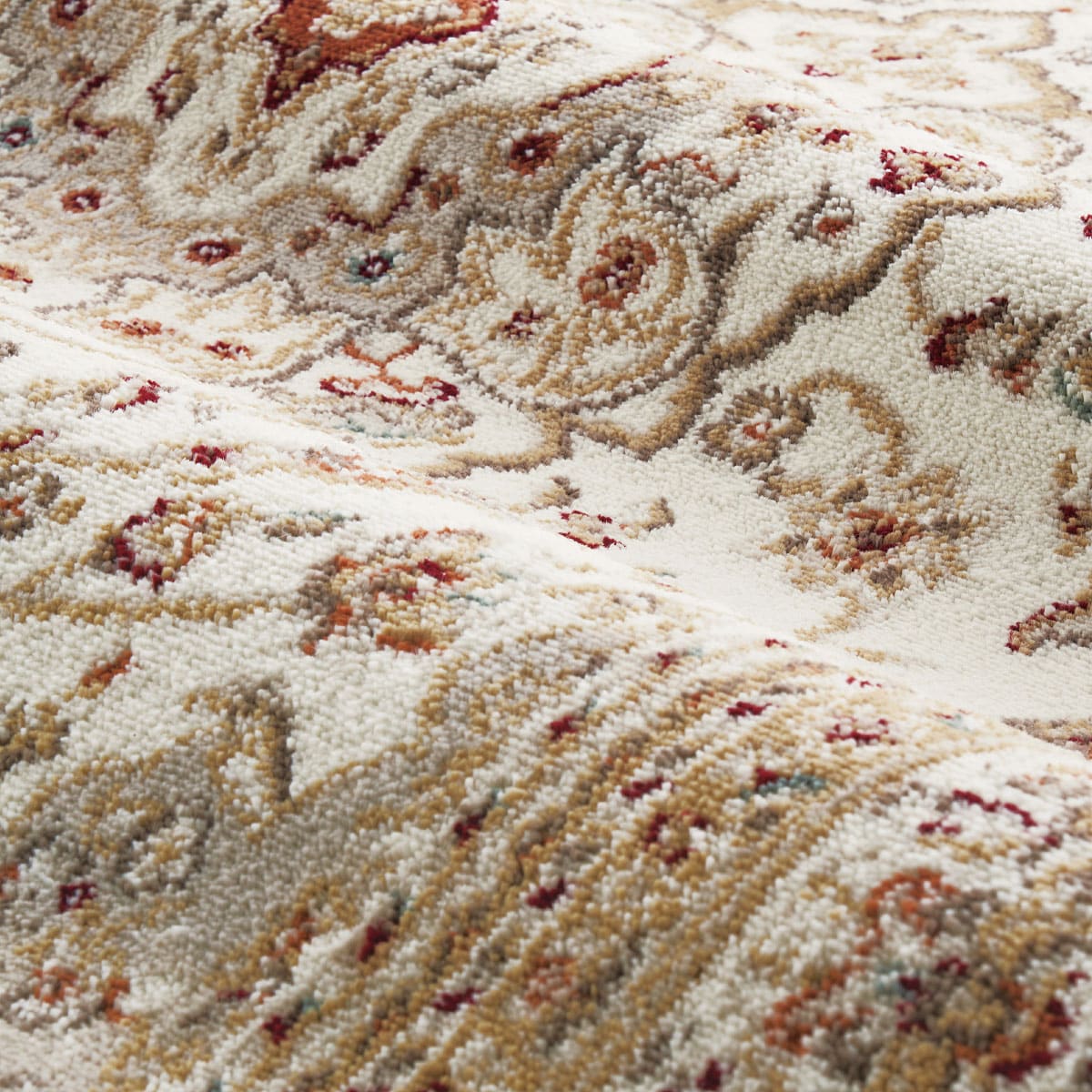 ペルシャ絨毯のように美しい模様が印象的な、エジプト製のウィルトンラグです。メダリオン柄の伝統美が気品あふれる優雅な空間を演出します。