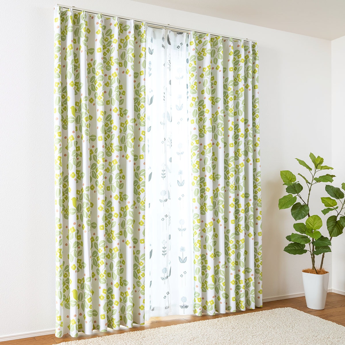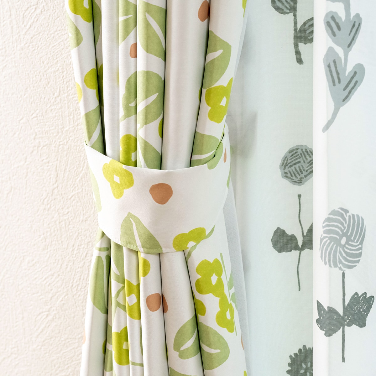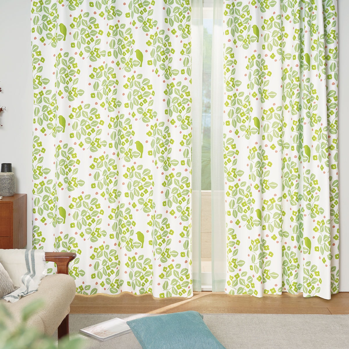 グリーン系(葉音/はおと)日本の四季をやさしく表現した「星燈社」のデザインカーテンです。