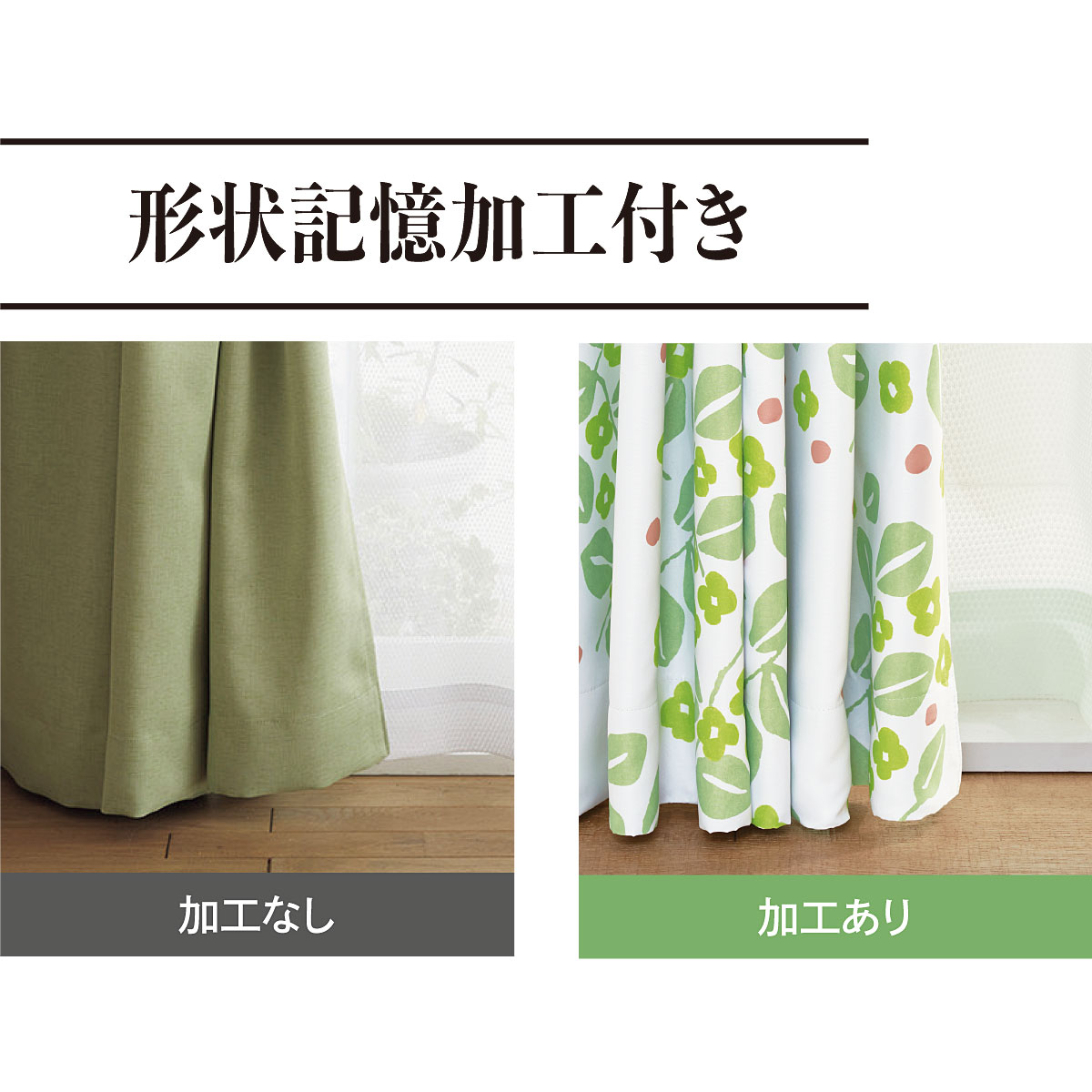 形状記憶加工付きで、きれいなドレープを保ちます。