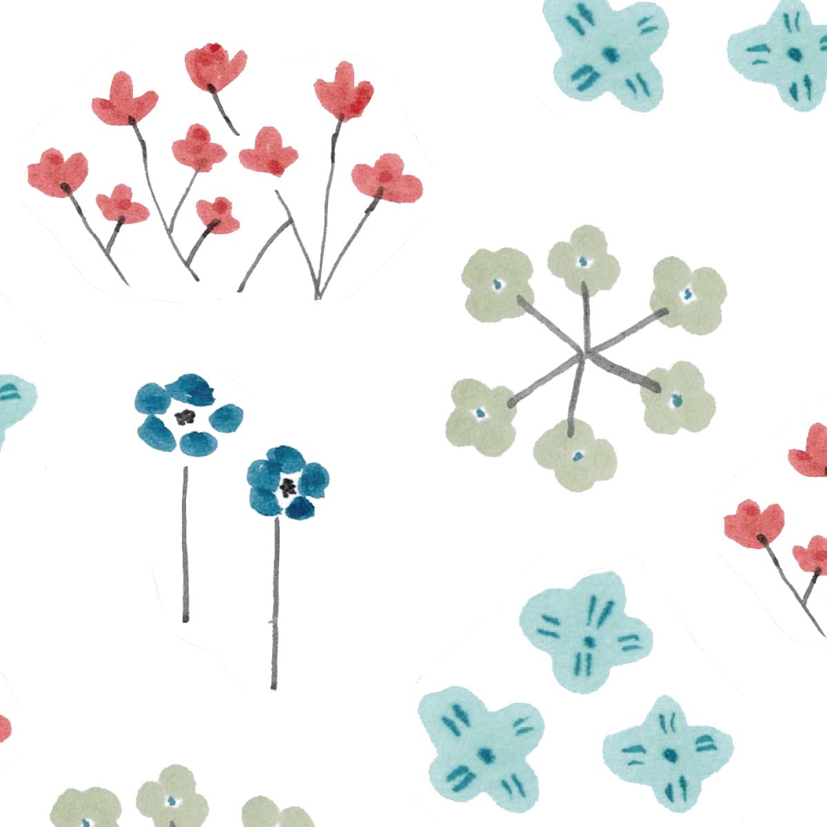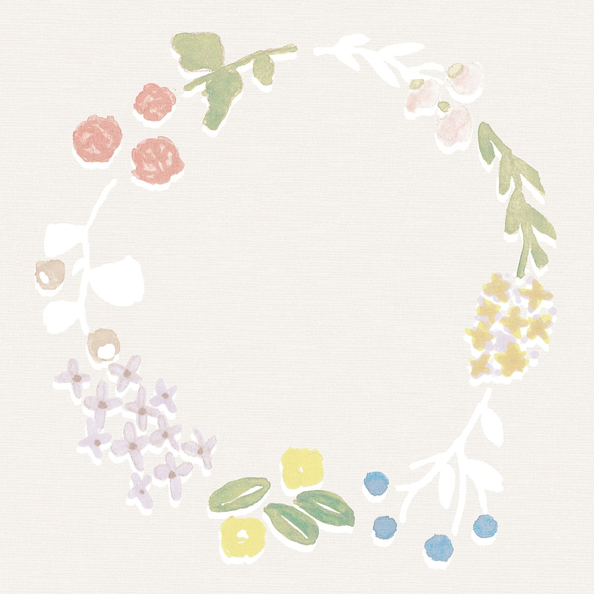 小花たちの儚さを、オフホワイトベースとブルーで爽やかに表現。
