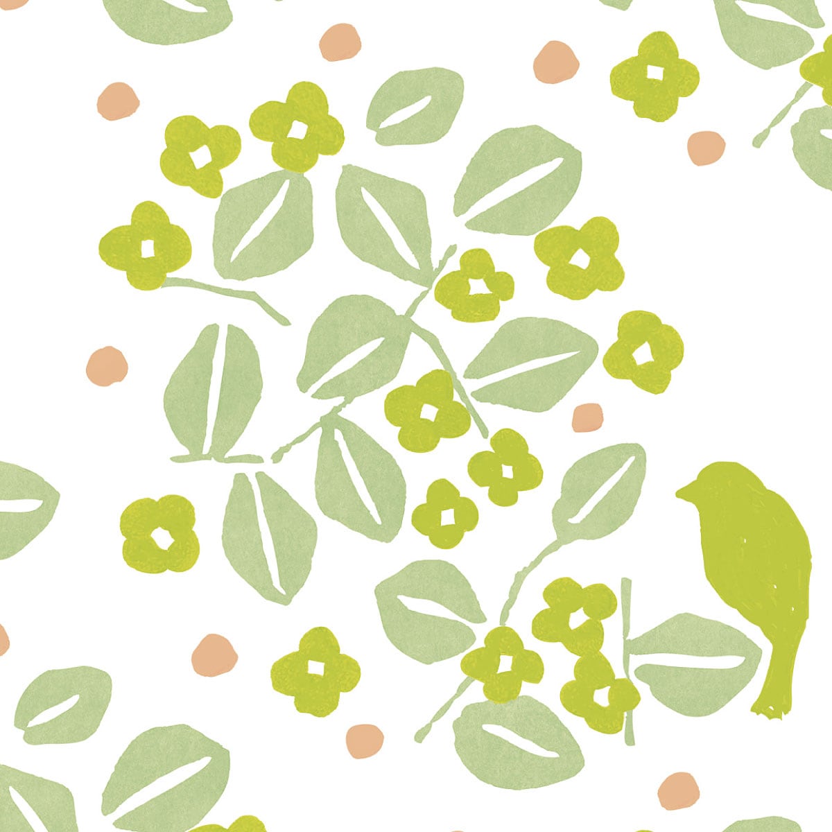 グリーン系(葉音/はおと)風に吹かれた木々が奏でる葉っぱの音色。所々に小鳥たちが佇んでいます。