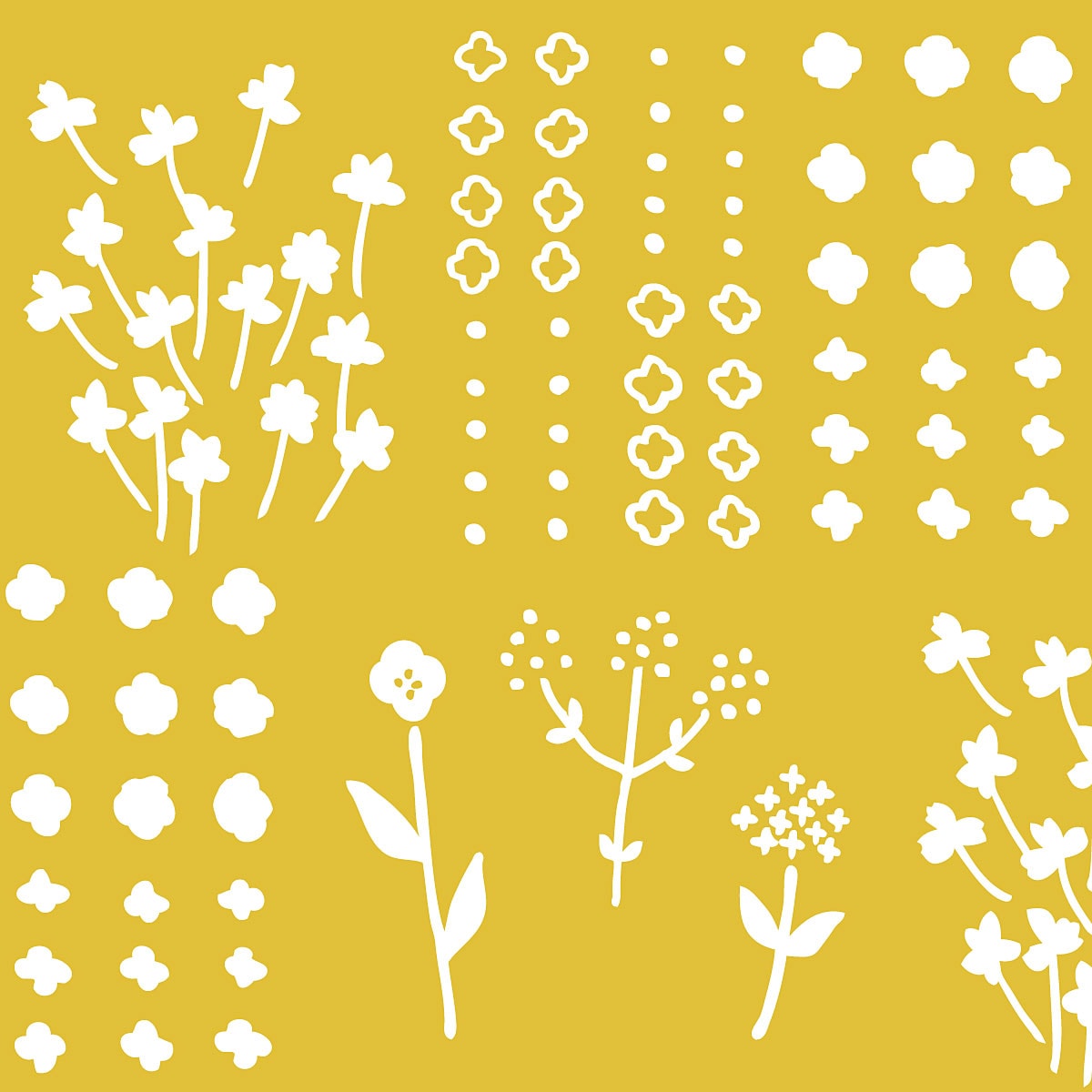 野花を摘んで丁寧に並べた押し花のイメージを、落ち着いた黄色で表現。