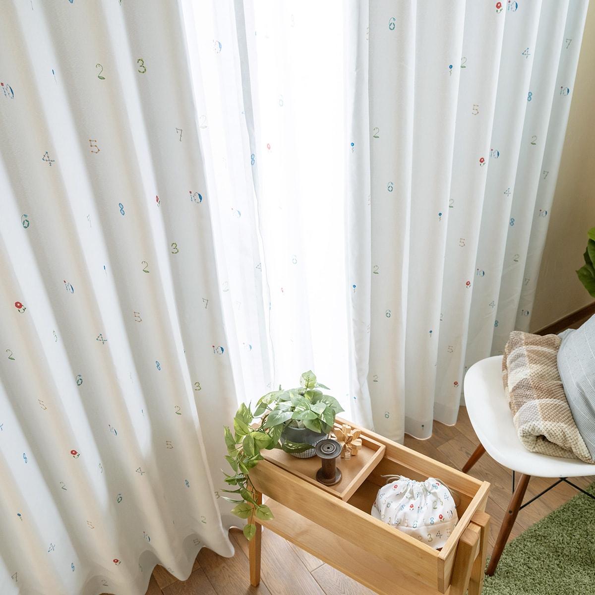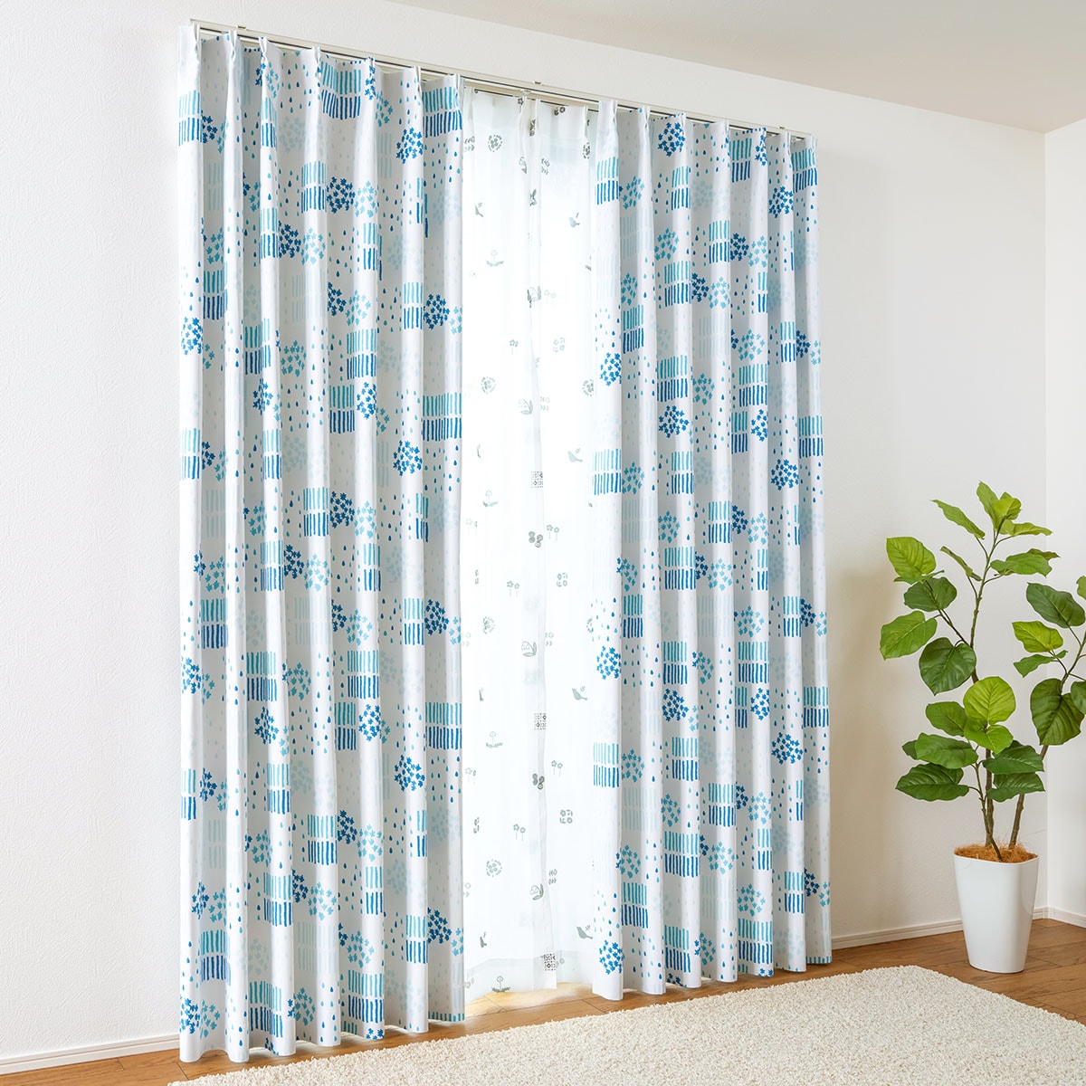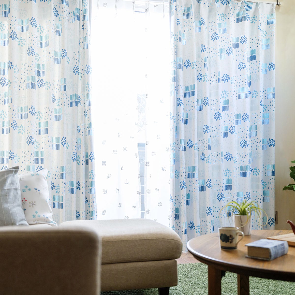ブルー系(うたかた)外の光を優しく取り込む3級遮光。ほどよく明るさを感じたい方に。