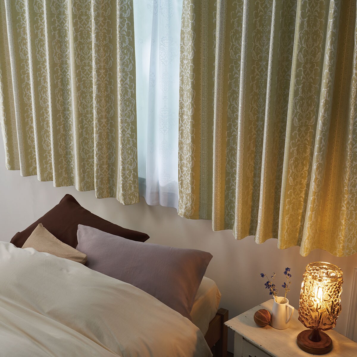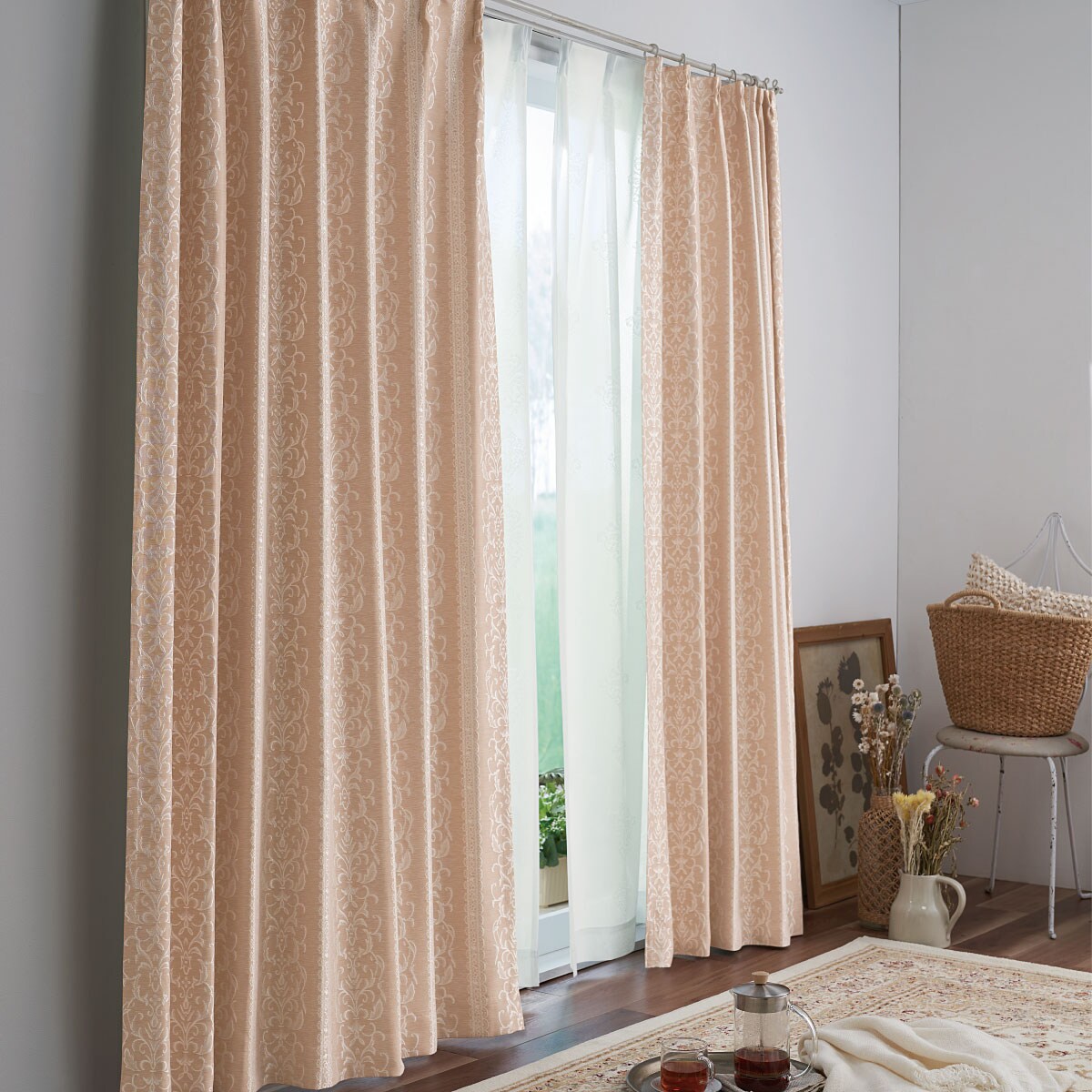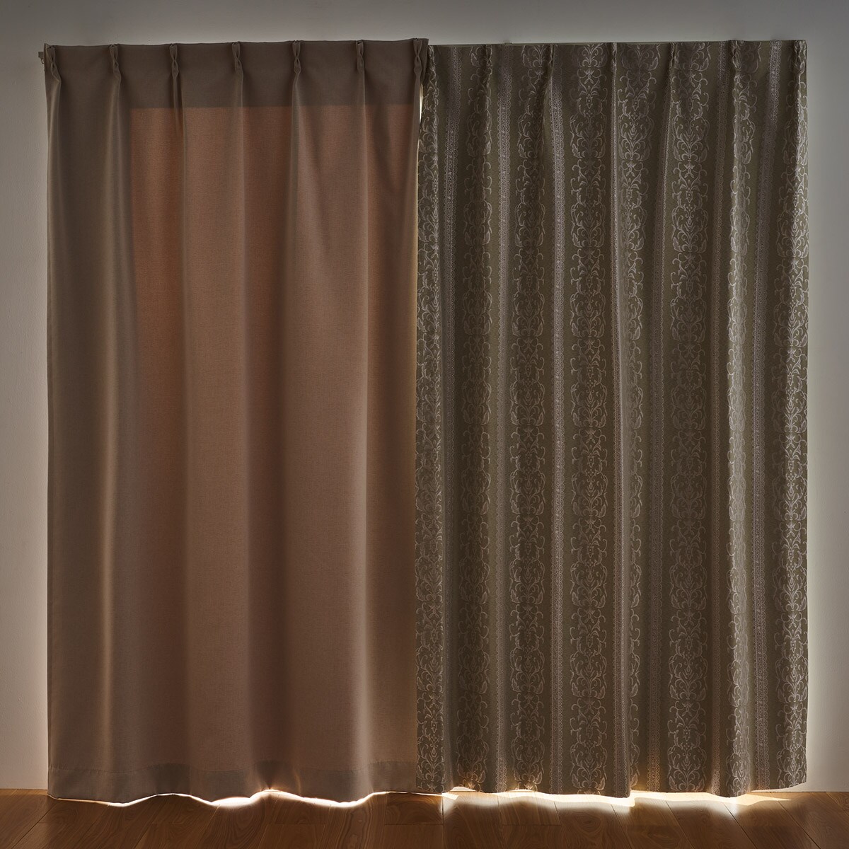エレガントなオーナメント柄がお部屋をゴージャスに演出する、ジャカード織りの1級遮光カーテンです。遮光率100%で眩しい朝日や西日も徹底カット。遮熱・保温効果に優れ、窓から侵入する熱気・冷気をしっかり防いで冷暖房効率もアップ。省エネしながら1年中快適に過ごせます。さらに遮音効果で、ぐっすり眠りたい方の寝室や騒音が気になるお部屋にもおすすめ。表生地と裏生地の間に特殊な黒フィルムを挟み込み、加工を施すことで高いトリプルカット機能を発揮します。小窓から幅広窓まで対応できる、充実のサイズ展開をご用意しました。