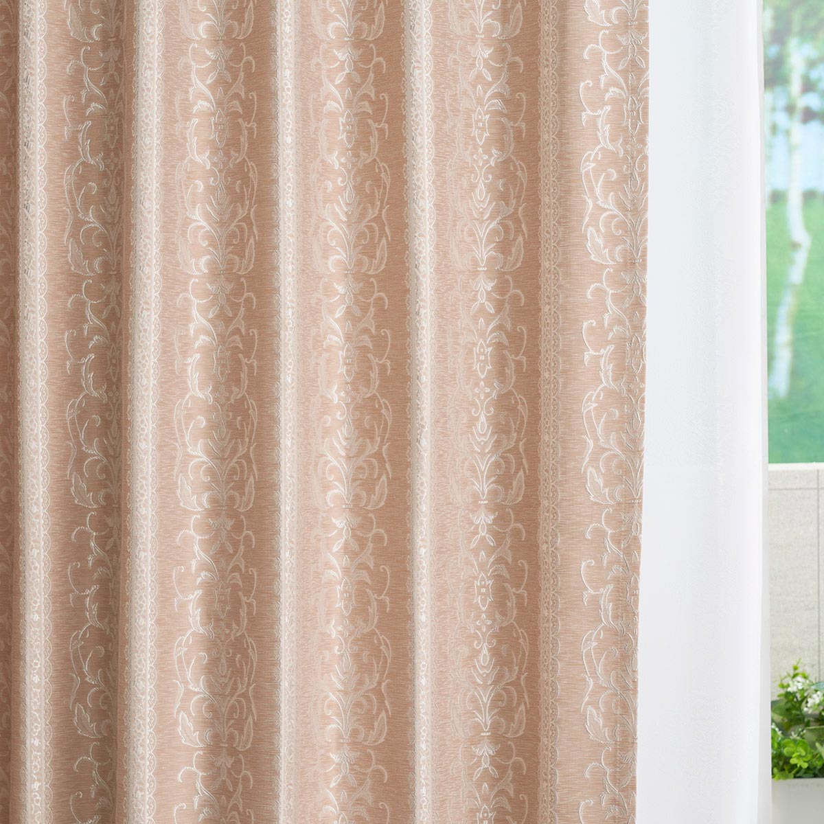 ライトピンク立体的な織り柄と美しい光沢のジャカード織りカーテンです。