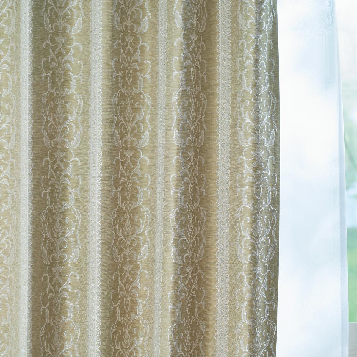 〔形状記憶加工付き〕立体的な織り柄と光沢が美しい、ジャカード織りの1級遮光カーテンです。遮熱・保温効果に優れているので、冬は暖かく夏は涼しく。さらに遮音効果で音漏れも軽減します。